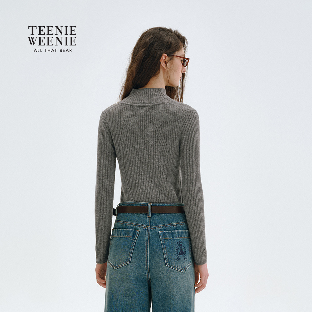 TeenieWeenie小熊女装绵羊毛针织衫冬季修身中领毛衣套头打底衫
