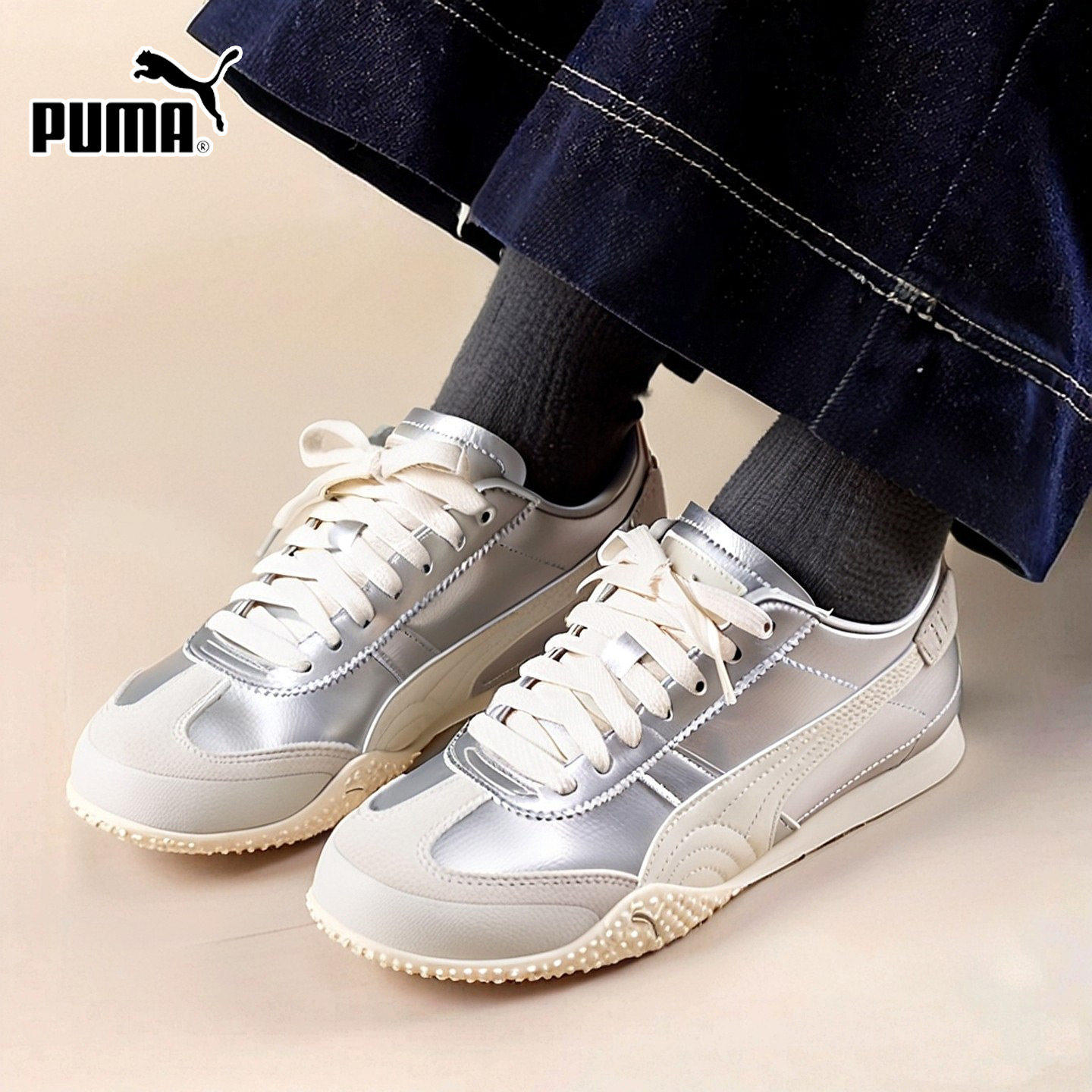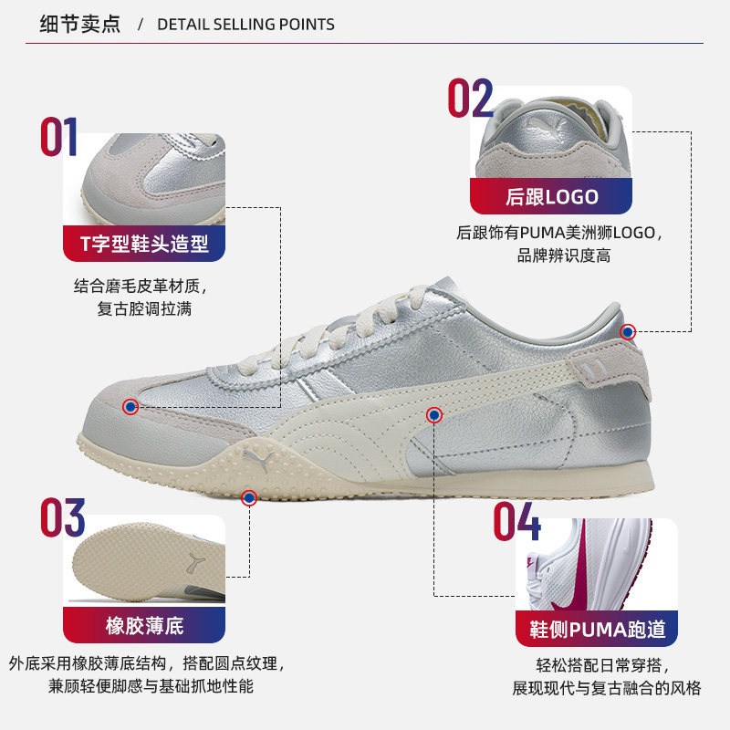PUMA彪马德训鞋女鞋2026新款银色休闲鞋运动T头鞋薄底鞋子405256