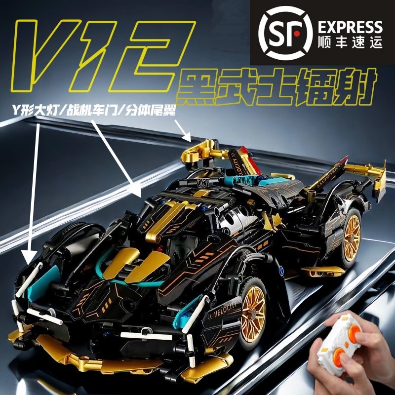 兼容乐高兰博积木基尼跑车布加迪模型保时捷遥控汽车男孩拼装玩具