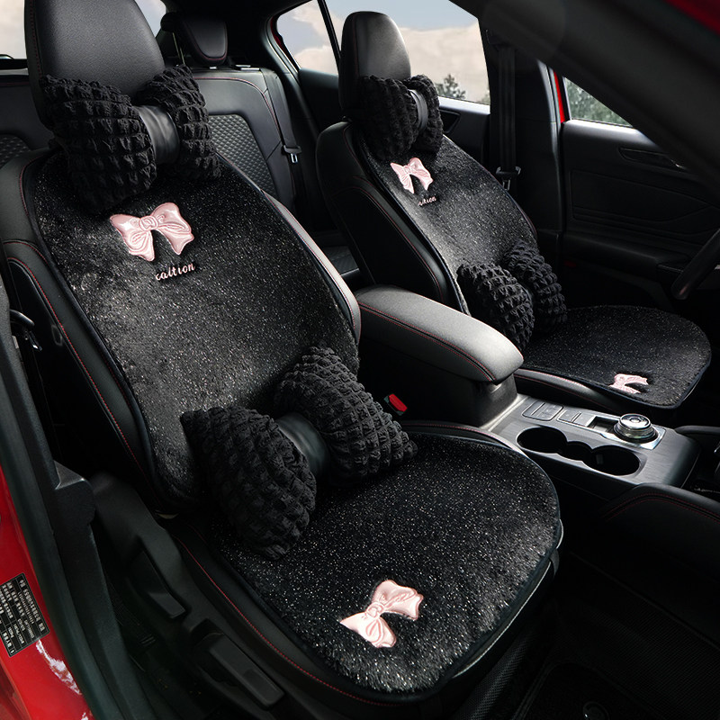 夏雷顿毛绒可爱蝴蝶结冬季通用保暖垫女士汽车坐垫座椅座垫满天星