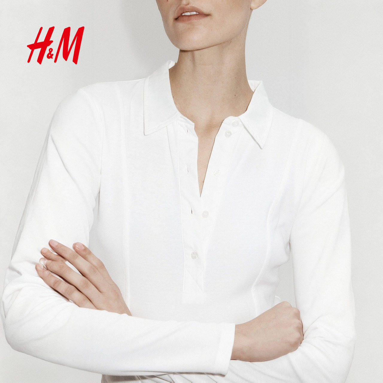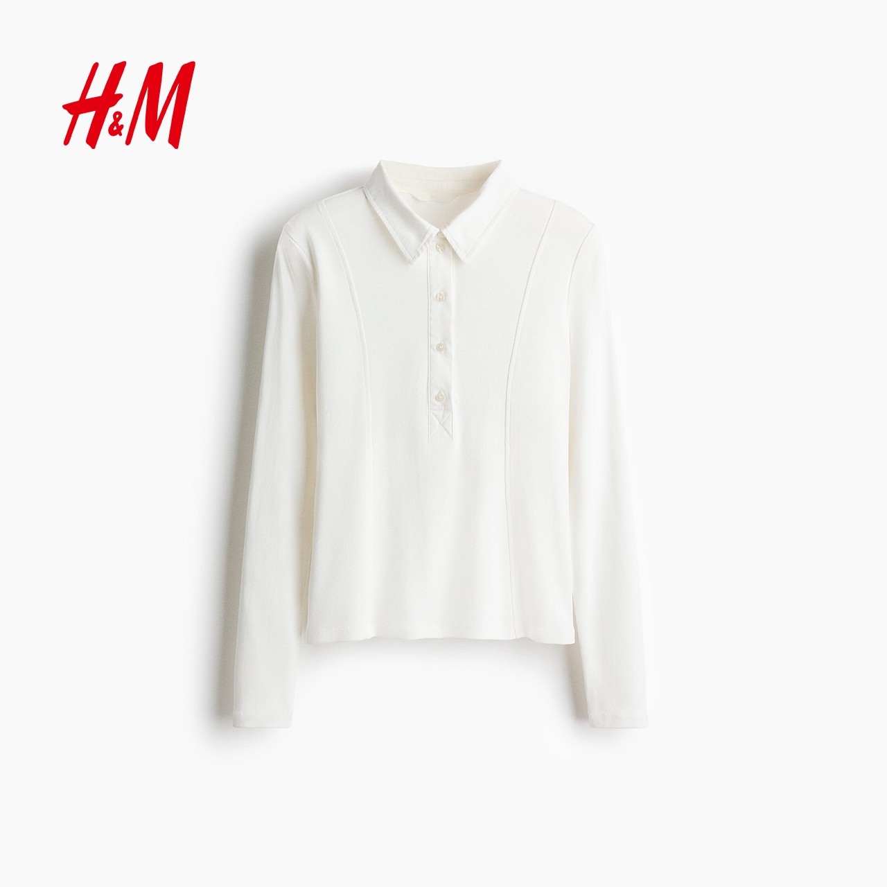 HM女装毛针织衫2026春季新款row系针织衫修身Polo潮流上衣1323884