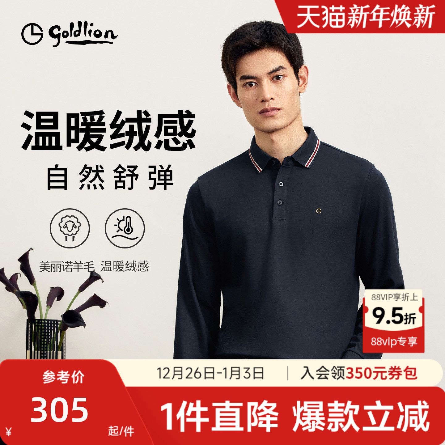 【磨毛】金利来秋冬新款长袖POLO衫含羊毛保暖翻领上衣T恤男士