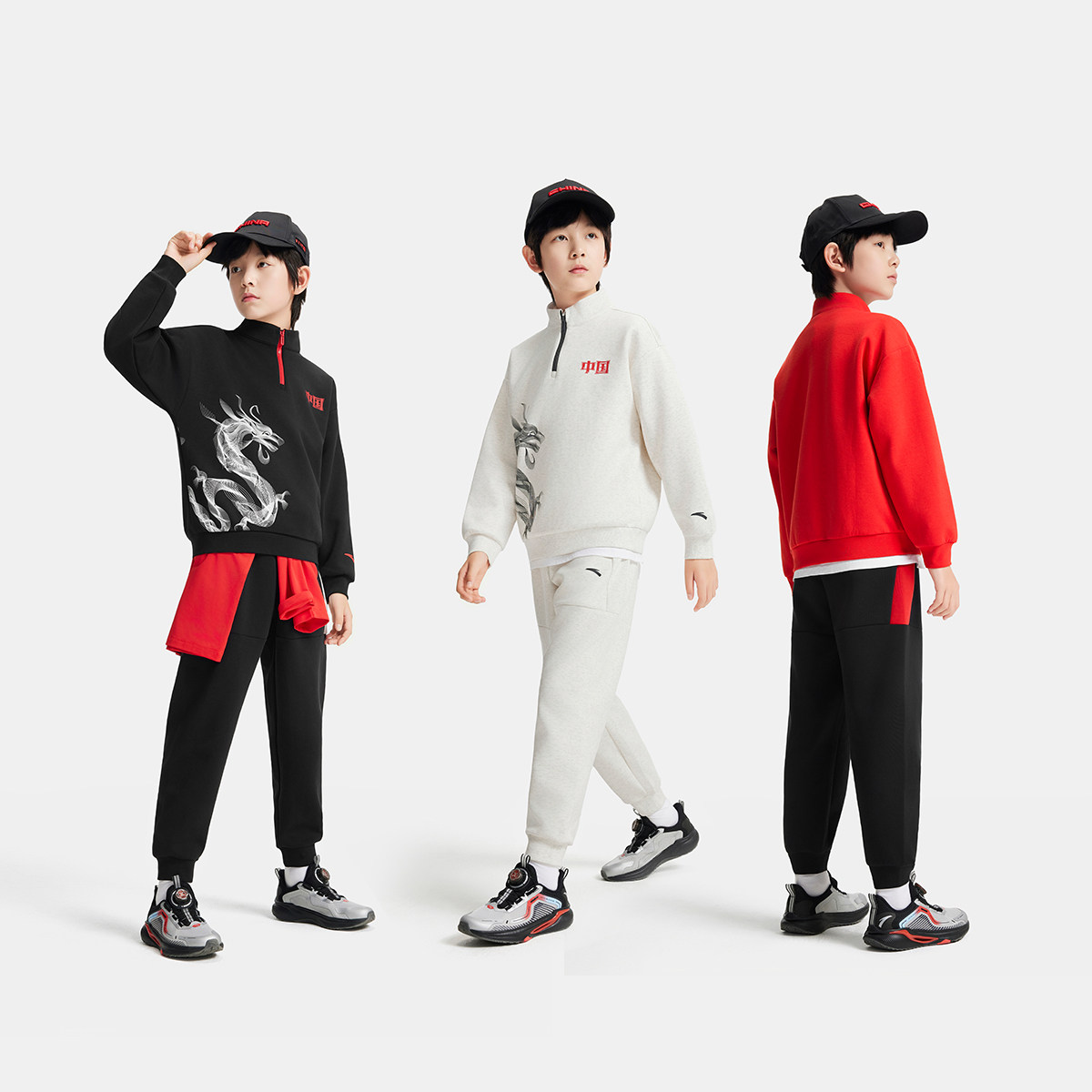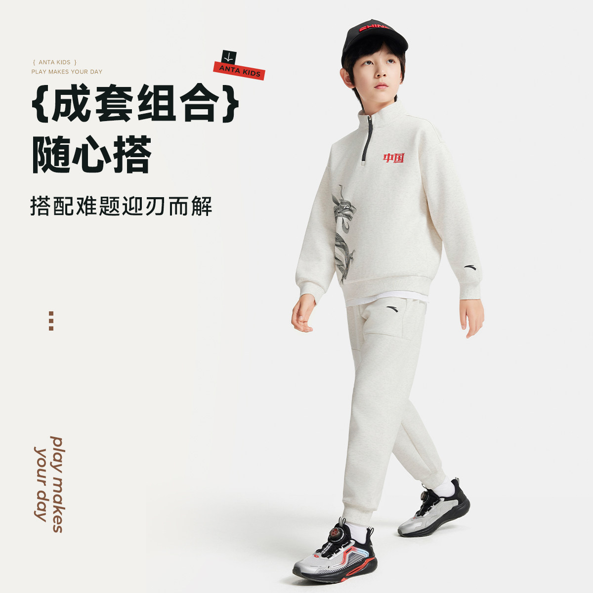 安踏儿童装男童卫衣外套长裤两件套2025秋冬中大童国潮套装运动风