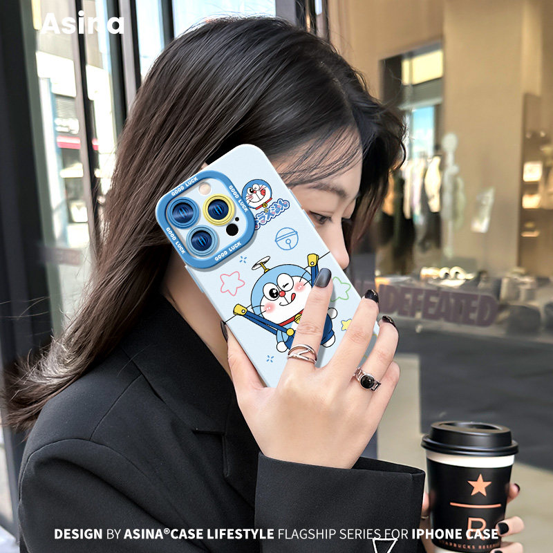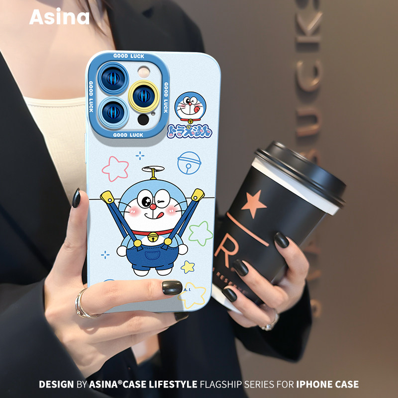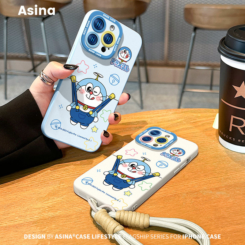 背带裤蓝胖子适用iPhone17Promax手机壳新款苹果16pro液态硅胶挂绳ip15保护套12可爱软全包超火女14pm防摔13