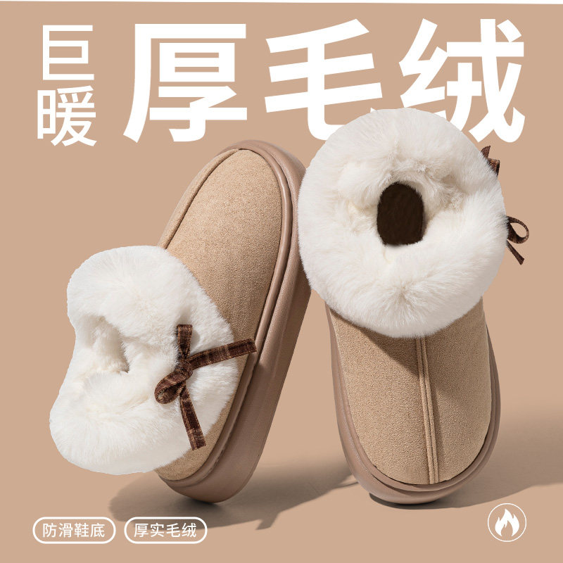棉拖鞋女秋冬季2025新款保暖厚底毛绒雪地靴加绒防水外穿防滑灰色