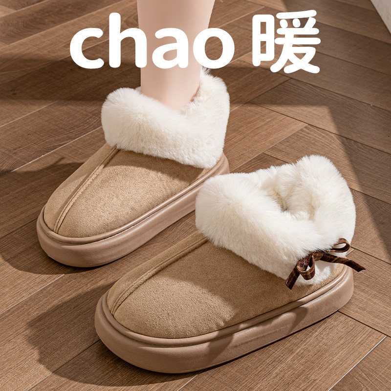 热风女鞋男鞋雪地靴加绒保暖加厚棉鞋短靴厚底毛毛鞋博肯鞋拖鞋