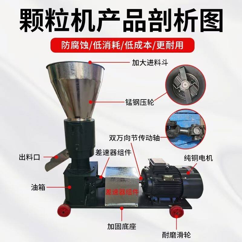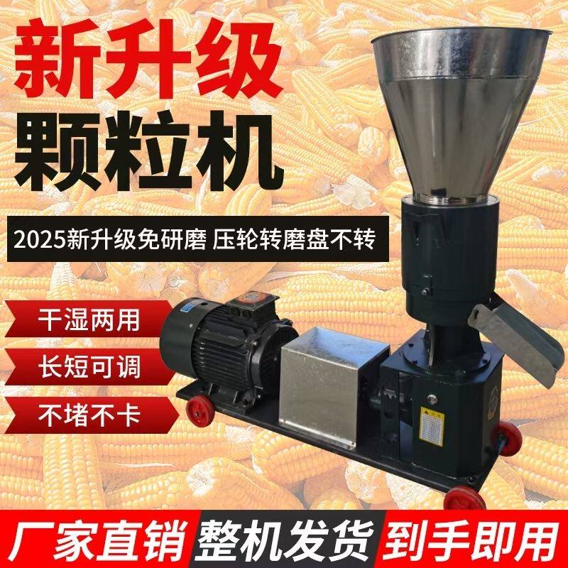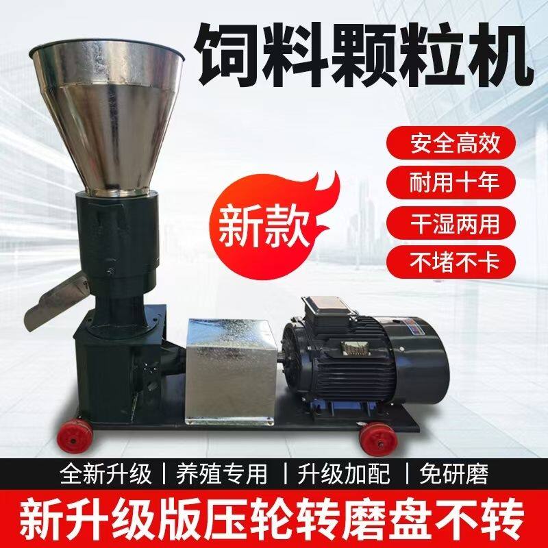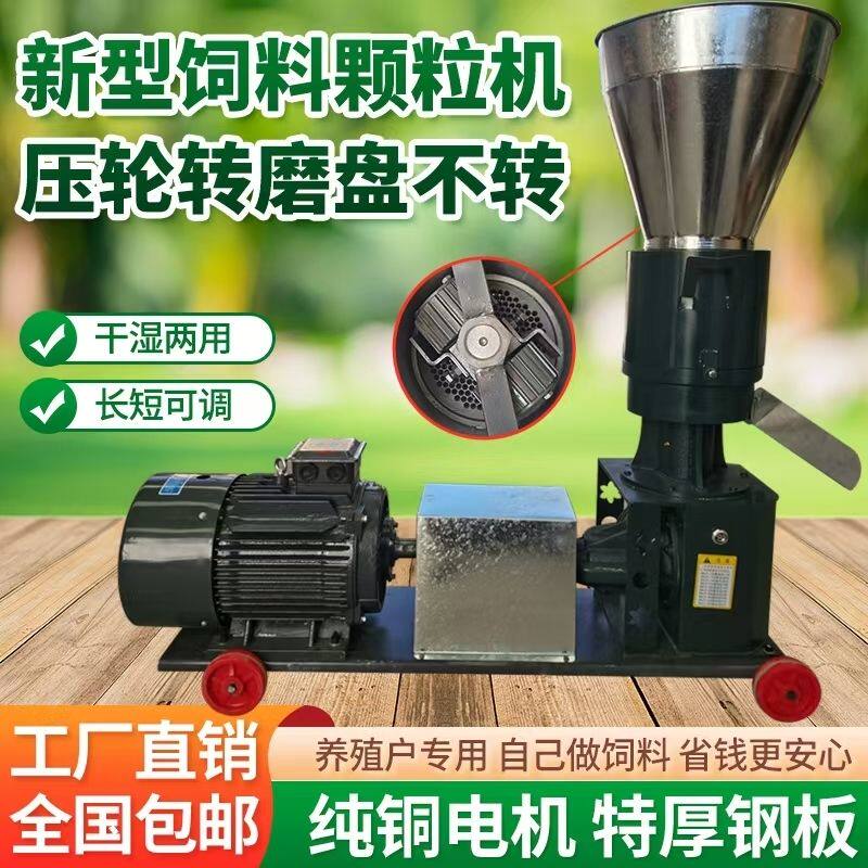 新款饲料颗粒机干湿两用养殖鸡鸭鹅猪牛羊秸秆造粒压轮转磨盘不转