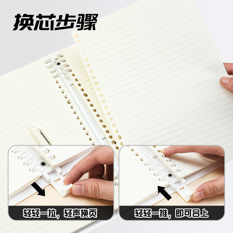 晨光活页本B5横线笔记本子A4方格网格记录本A5多规格可拆卸替芯软壳考研线圈错题本加厚纸张不咯手活页夹高中