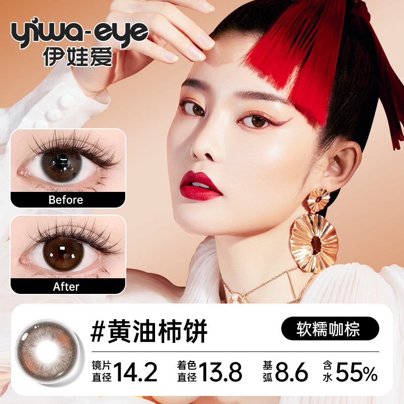 【买4享5】海俪恩美瞳月抛2片大小直径锁边彩色隐形眼镜蛋挞柴柴