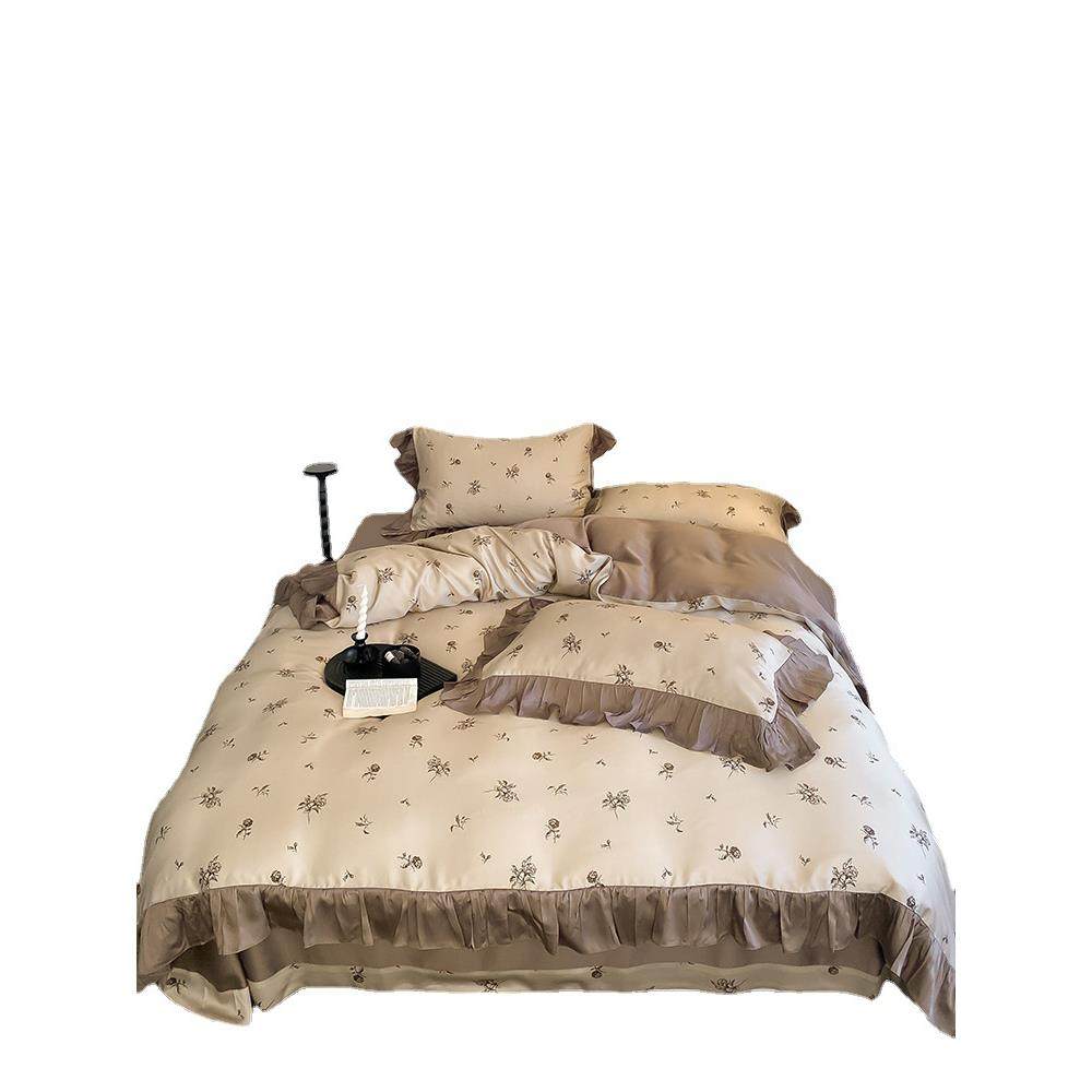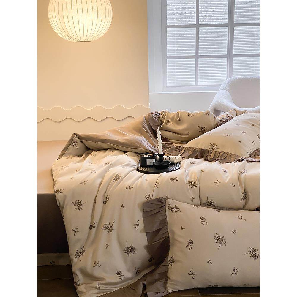 夏季清新花卉荷叶边100支天丝四件套凉爽丝滑双面凉感冰丝床品1.8