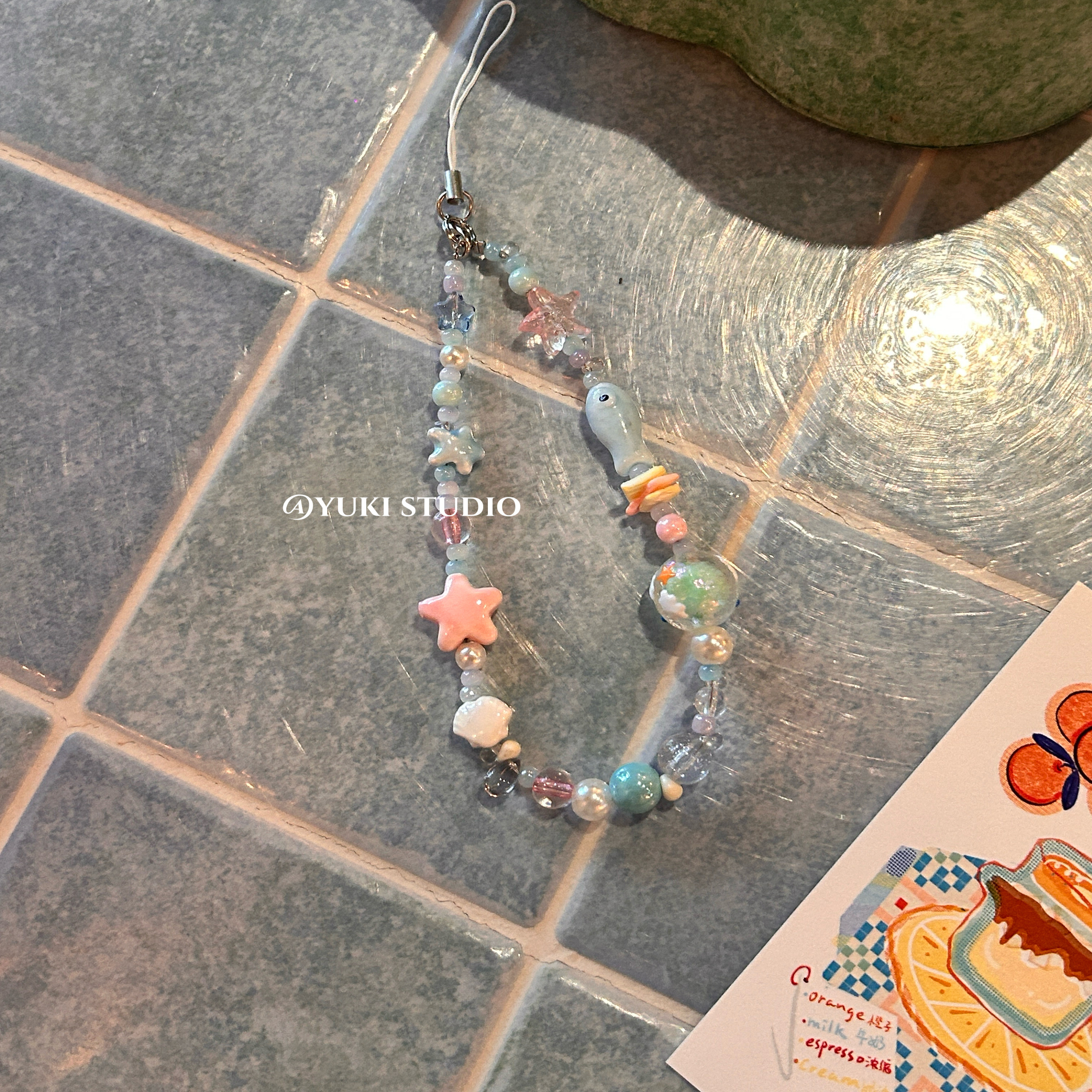 ins夏日海洋小鱼陶瓷星星手机串珠挂饰ccd相机手机链挂件清新链条