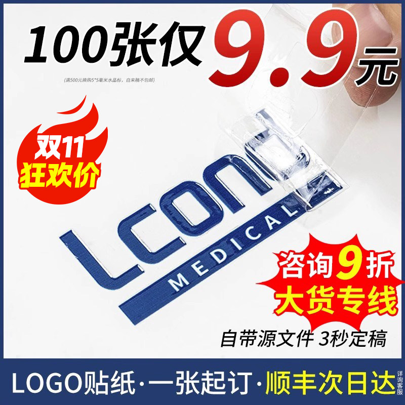 LOGO贴纸定制公司水晶标贴金属标签uv转印贴透明商标二维码订做打印贴标自粘撕膜留字图烫金定做防水不干胶