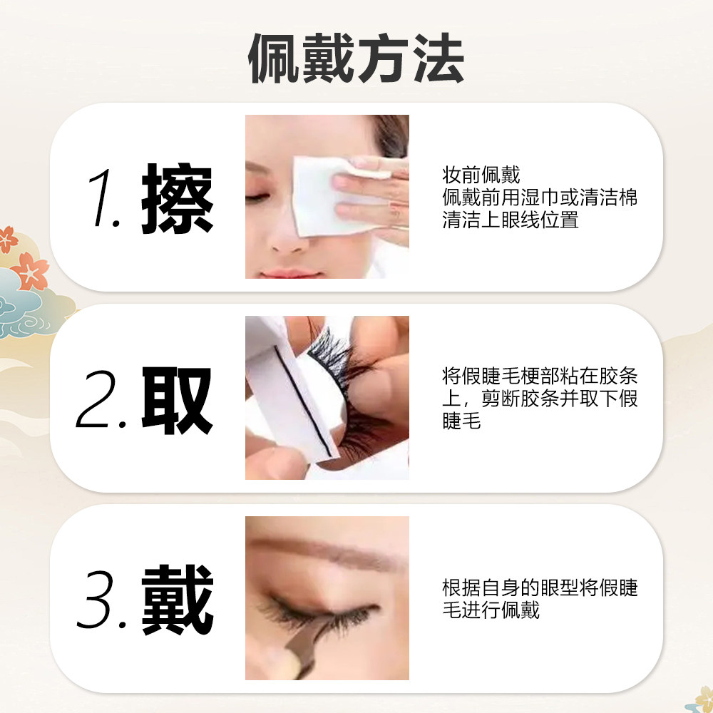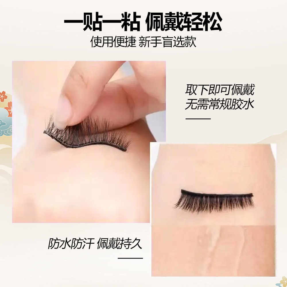 花间朵一片式新品免胶自粘旅行装假睫毛自带胶条温感自然MJ001款