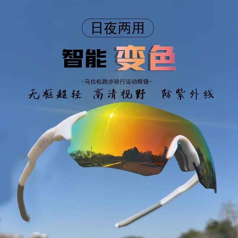 专业跑步运动眼镜男马拉松变色防紫外线防风护目太阳眼镜骑行登山