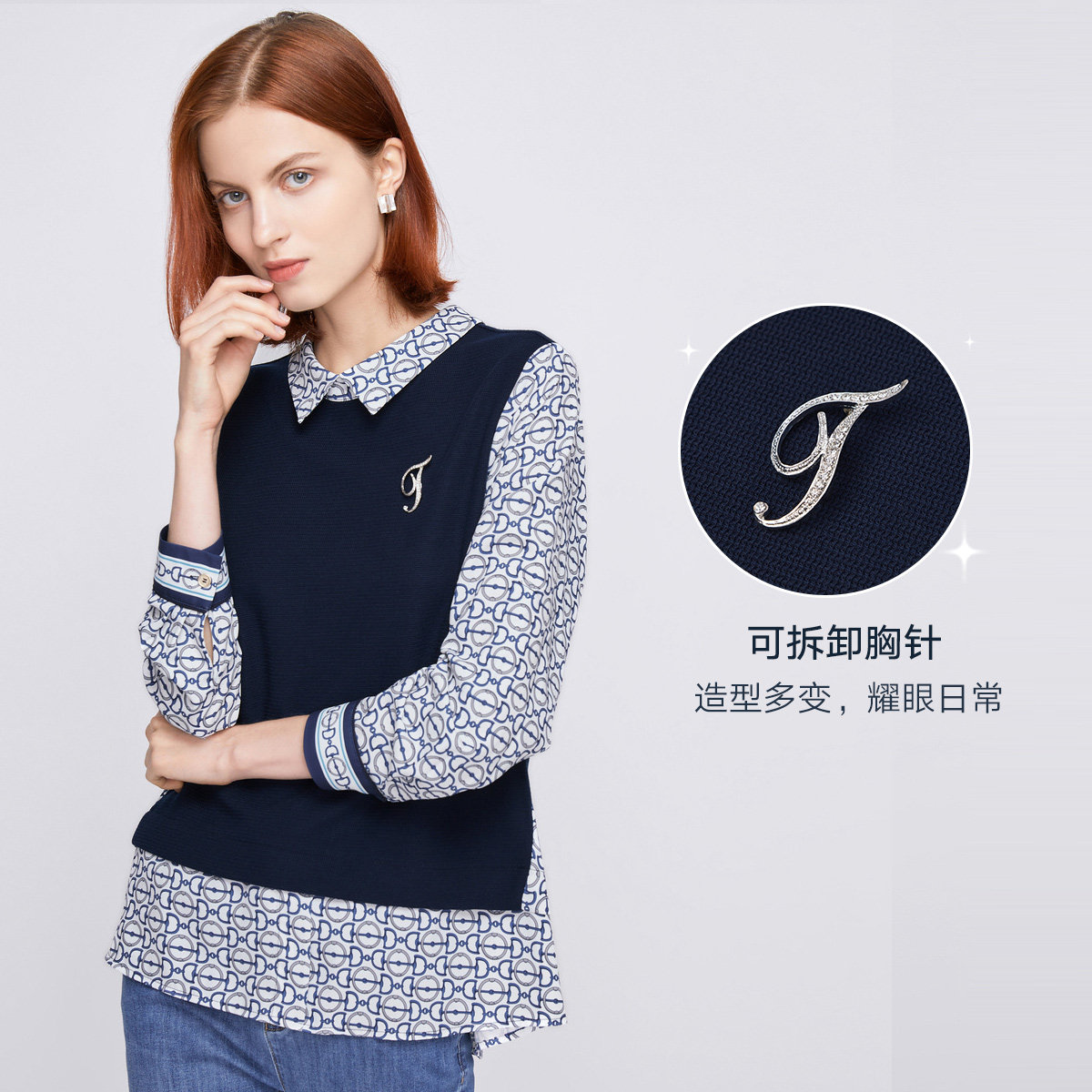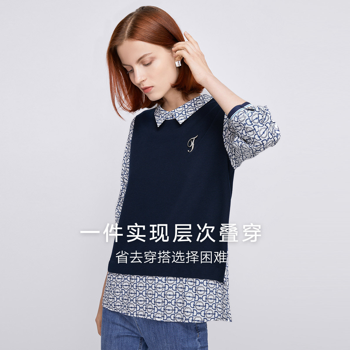 FINITY2025秋新款衬衫拼接假两件宽松气质显瘦高级感休闲上衣女