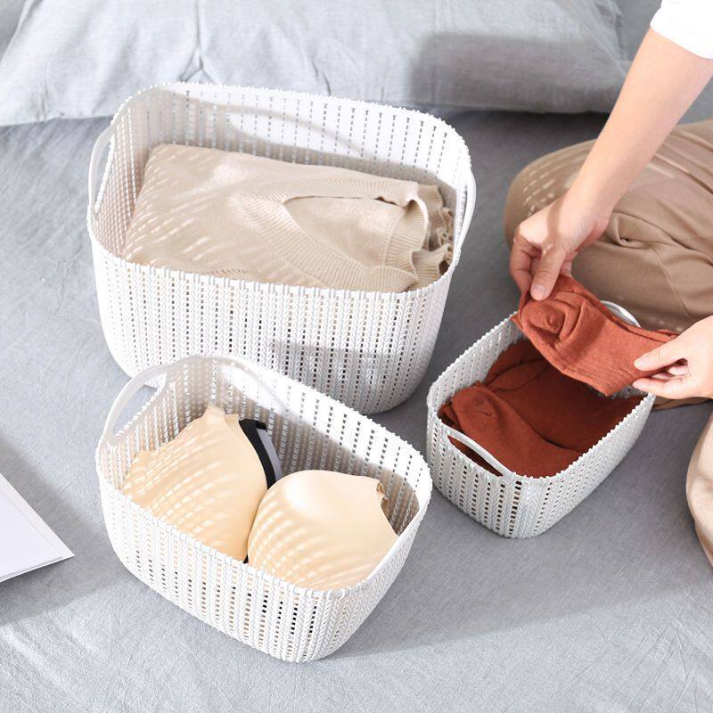 仿藤编收纳篮大容量桌面收纳盒学生宿舍杂物整理盒简约收纳篮子