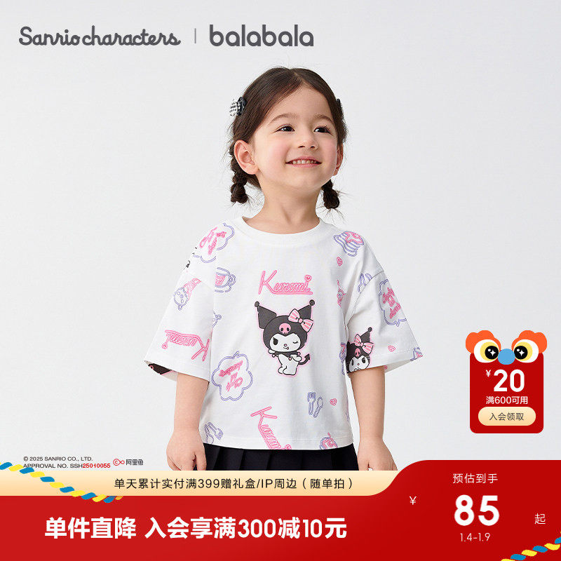 【库洛米IP】巴拉巴拉童装儿童短袖女童t恤2025新款夏装休闲上衣