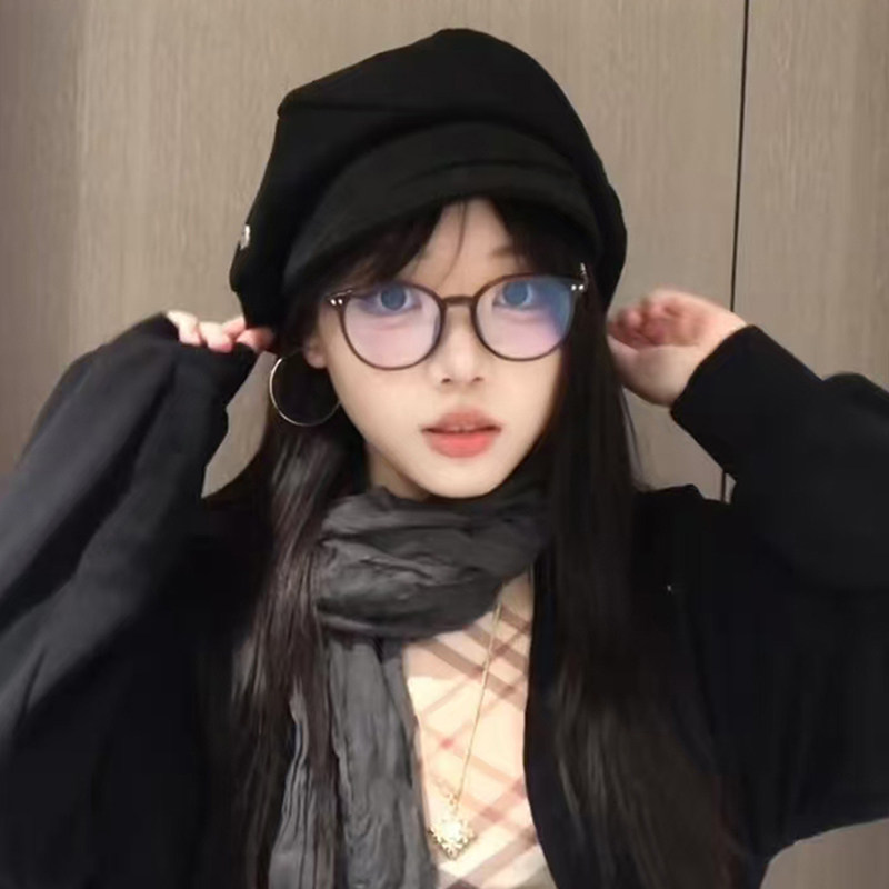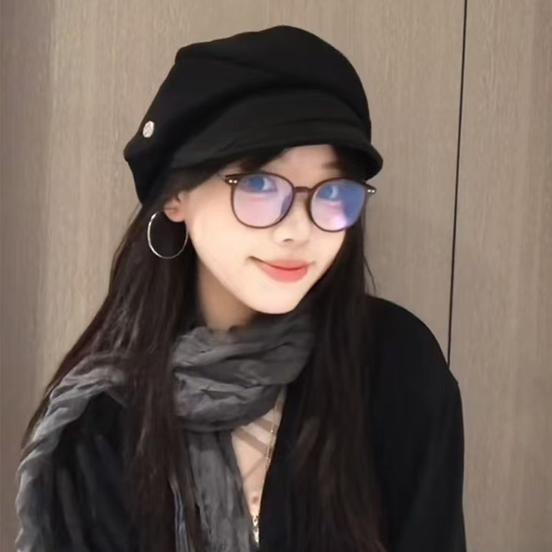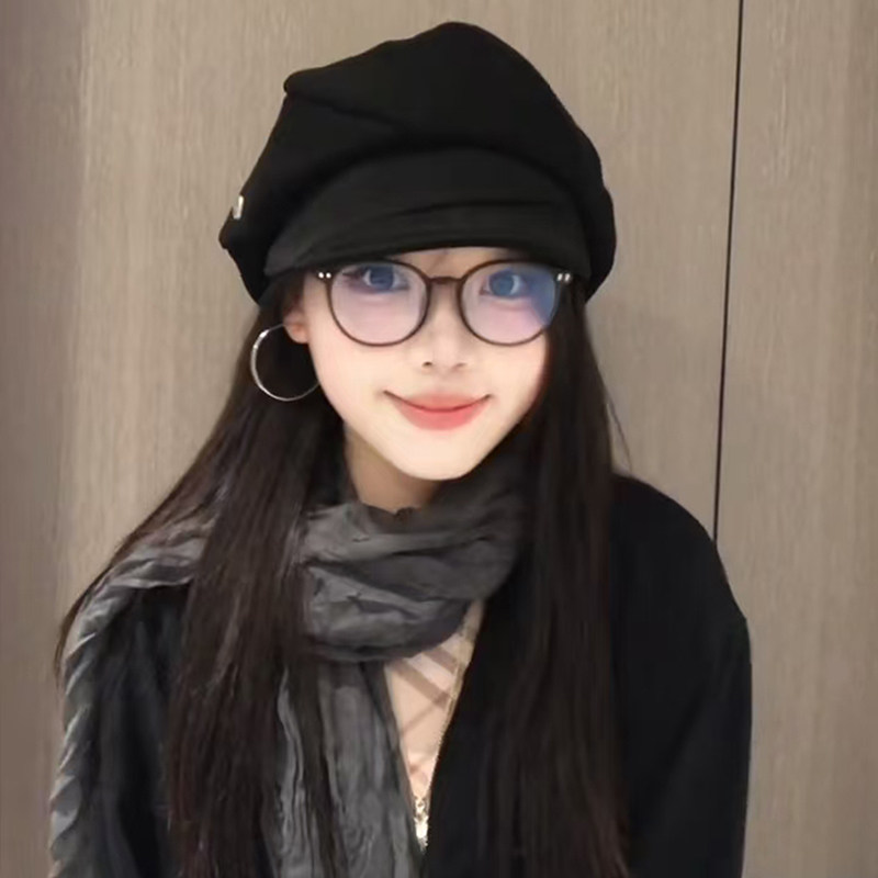 韩系复古黑色贝雷帽子女款2025新款显脸小八角帽大头围八角报童帽