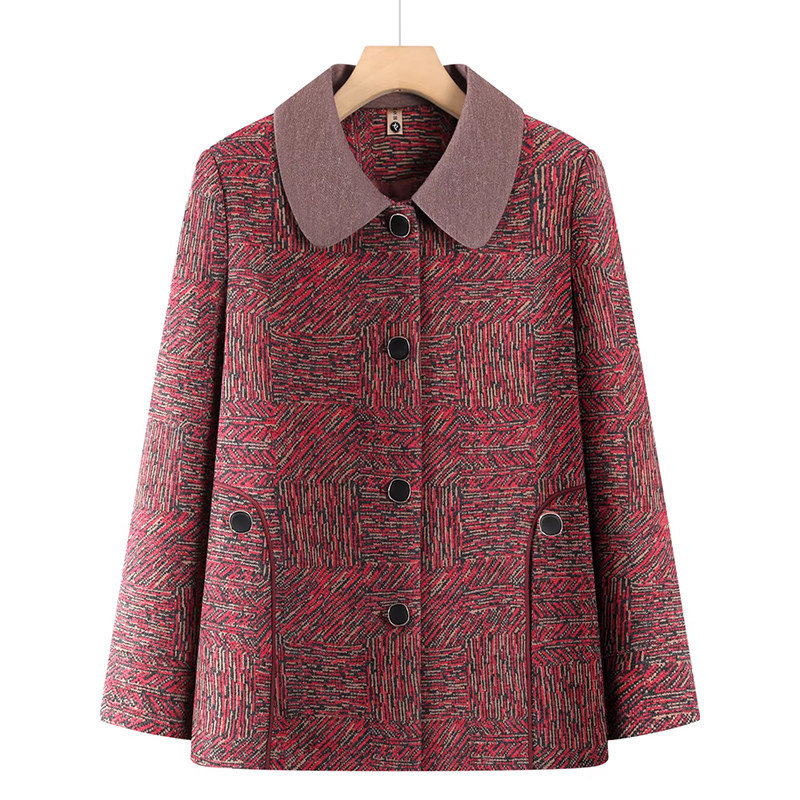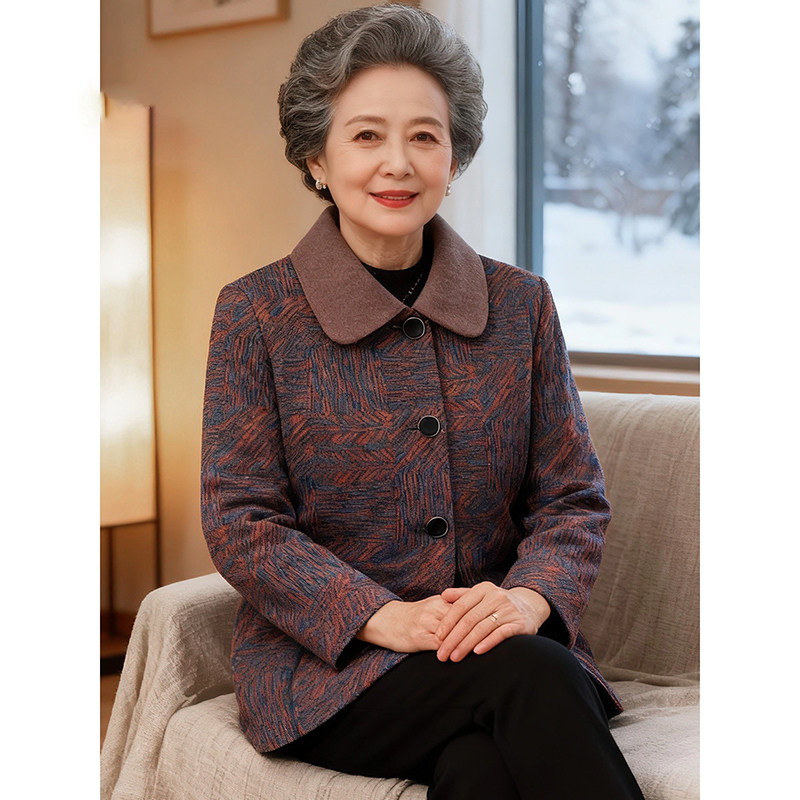 奶奶秋冬外套中老年人2025新款妈妈春秋老太太上衣加绒红色小个子