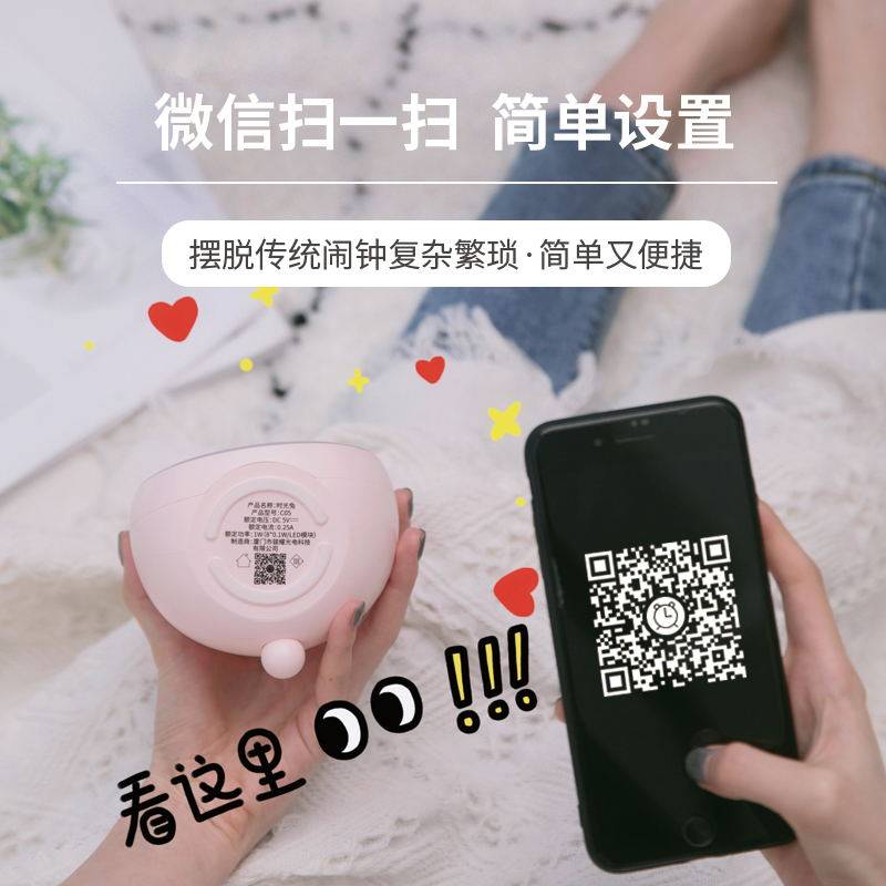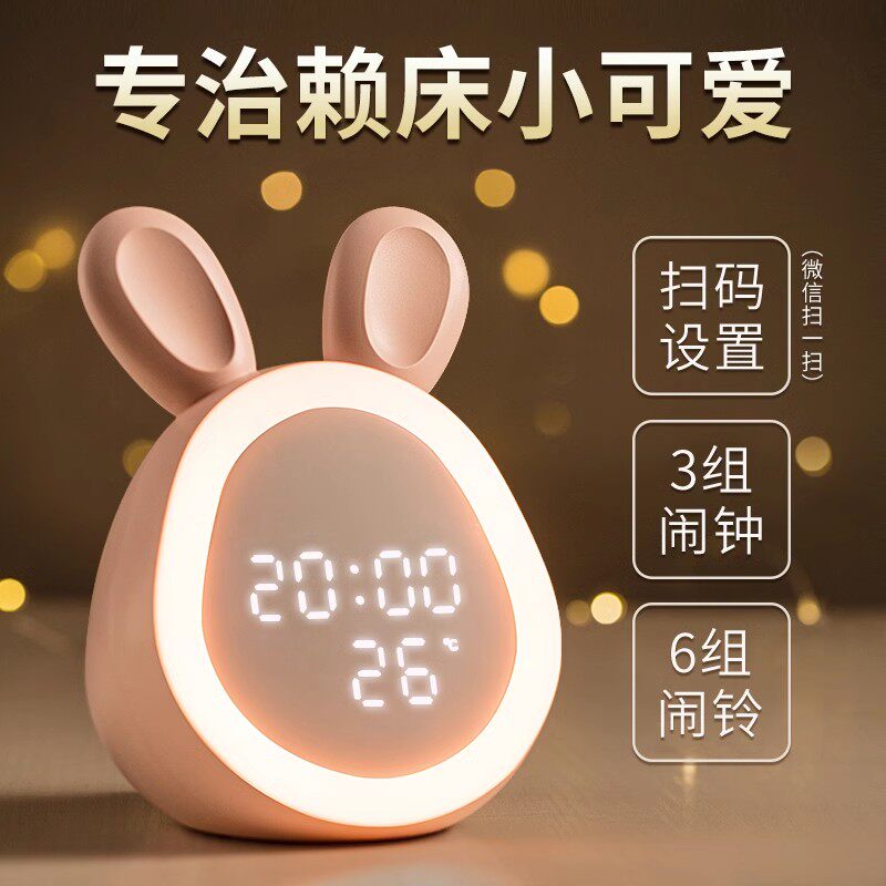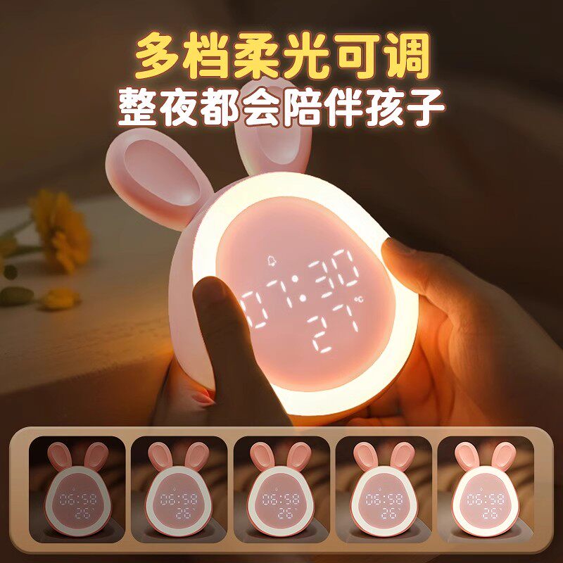 兔子小夜灯卧室闹钟床头伴睡婴儿喂奶护眼儿童柔光带时间一体台灯