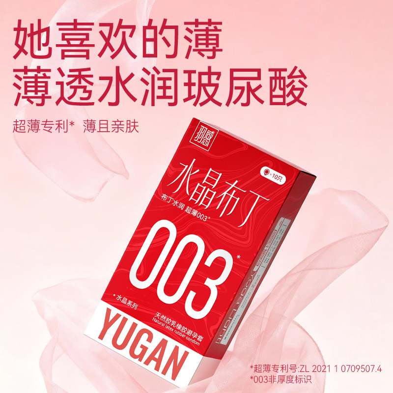 【超薄固态玻尿酸 】羽感003水晶布丁正品避孕套1600mg润滑剂tt