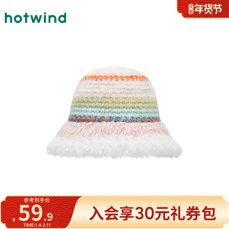 热风女士帽子2025年冬季新款条纹拼接厚盆帽撞色条纹保暖毛绒盆帽