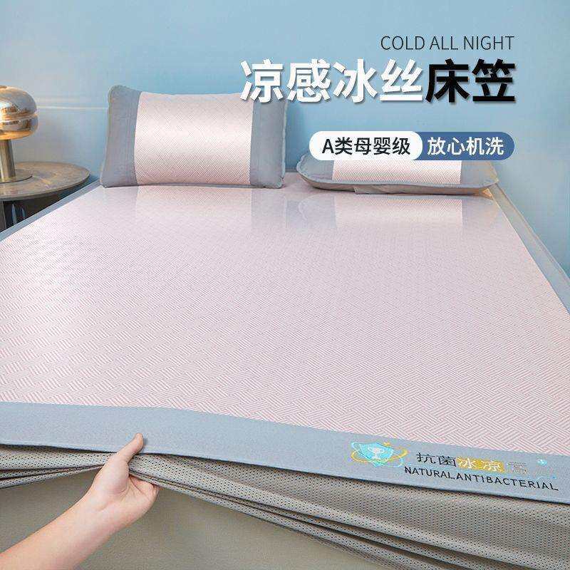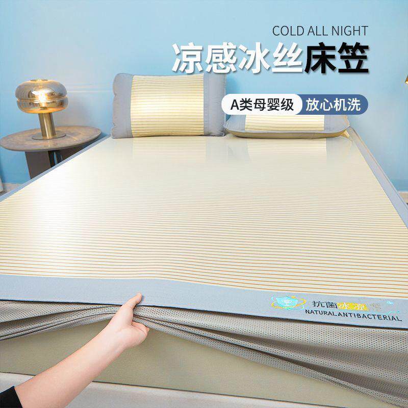 夏季凉感冰丝床笠可机洗A类母婴级家用折叠式透气抗菌软席子直发