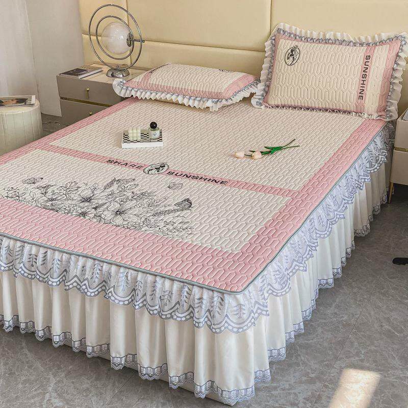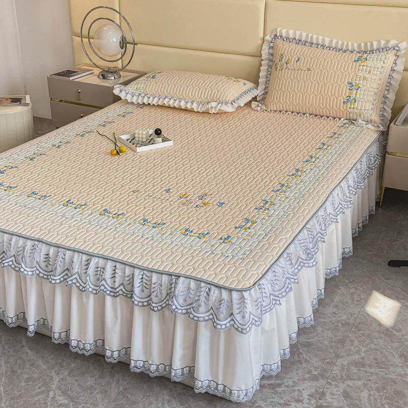 夏季公主风乳胶凉席三件套床笠夏天家用可水洗空调席床席单人冰丝