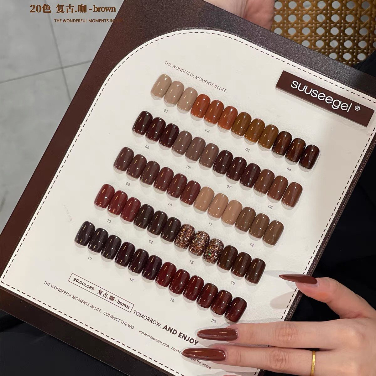 束色20色复古红色复古咖甲油胶安可拉红美拉德美甲纯色suuseegel