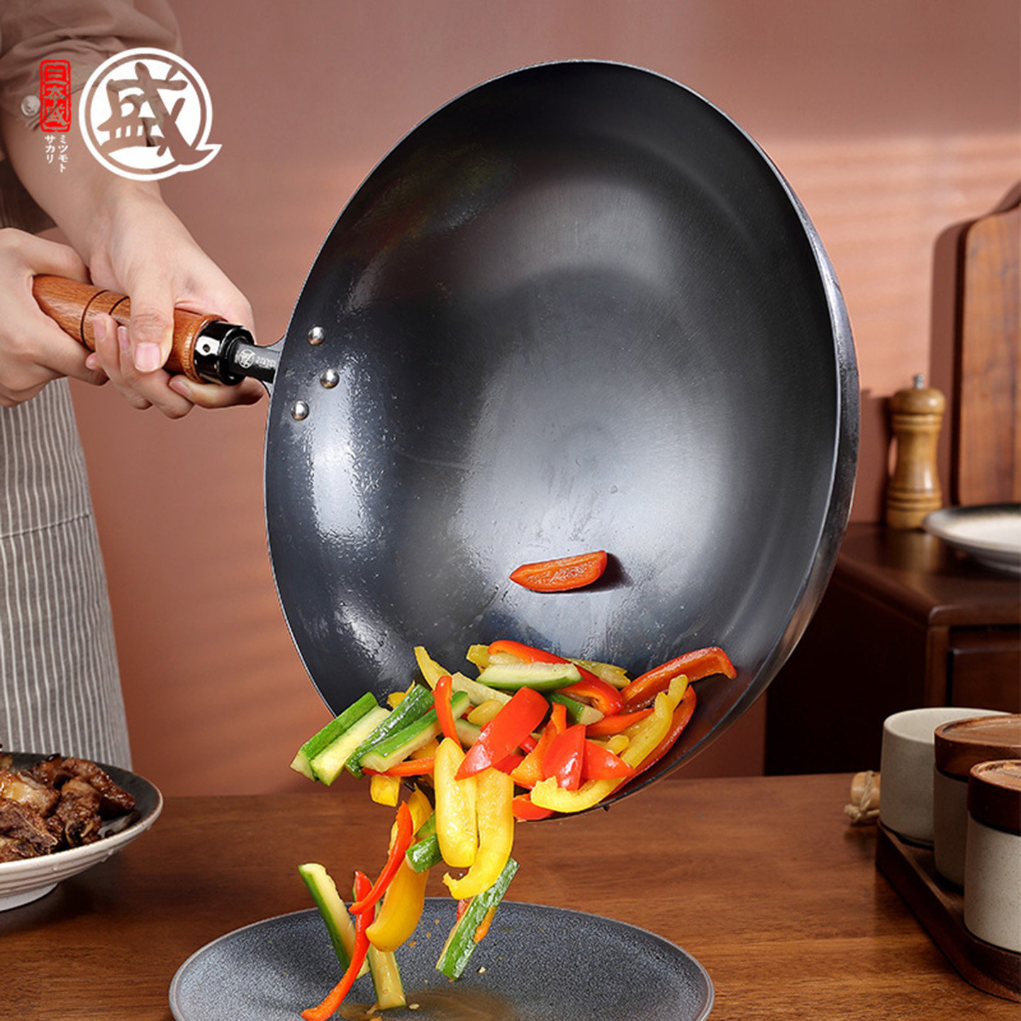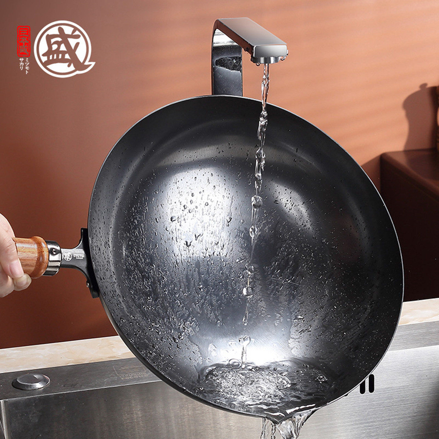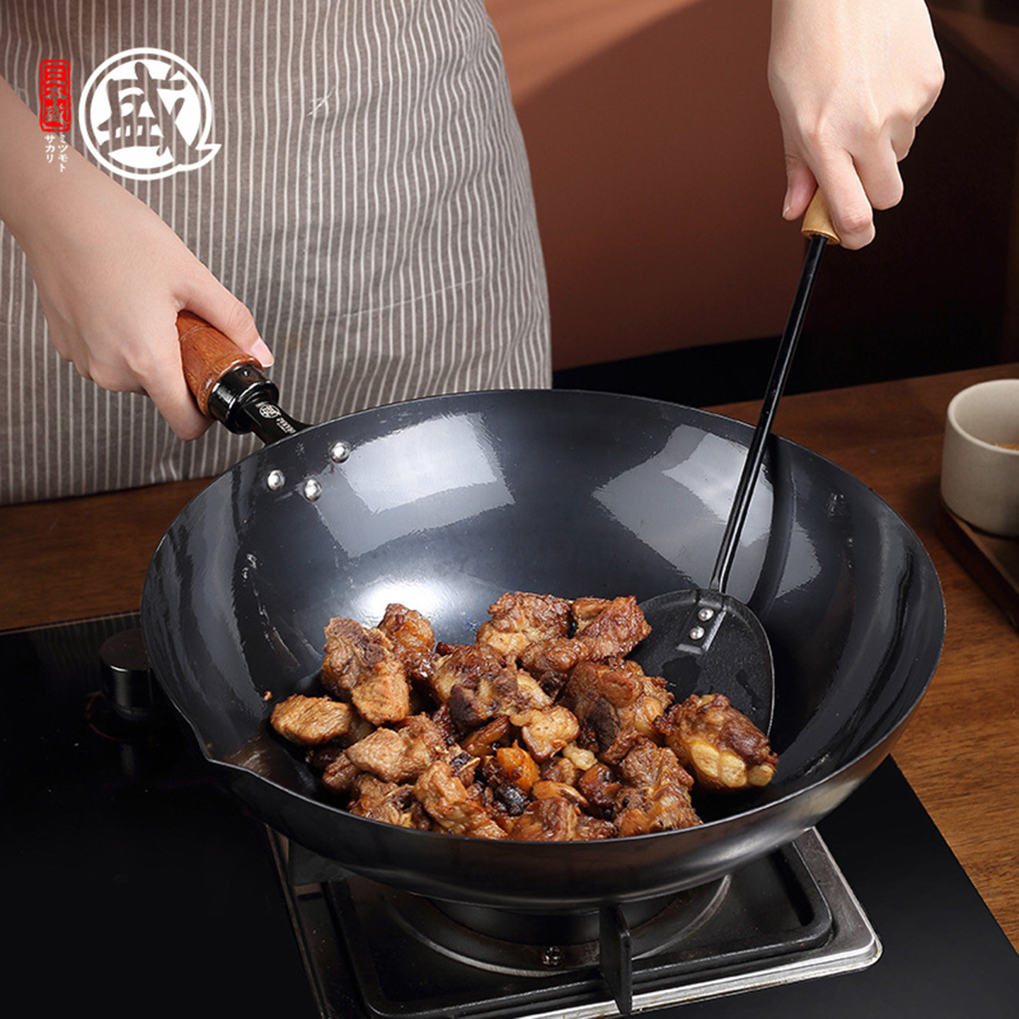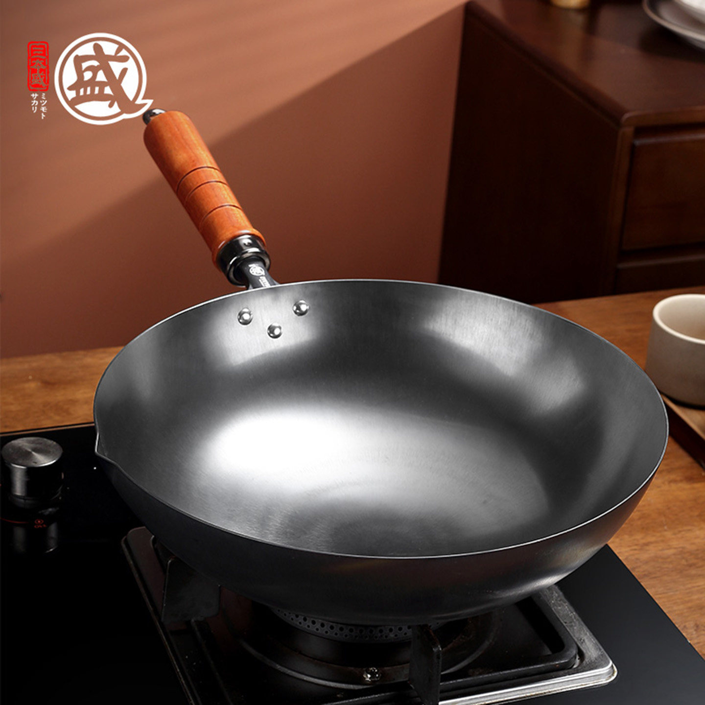 三本盛日本原装进口铁锅炒菜锅家用无涂层炒锅极铁不粘锅燃气灶用