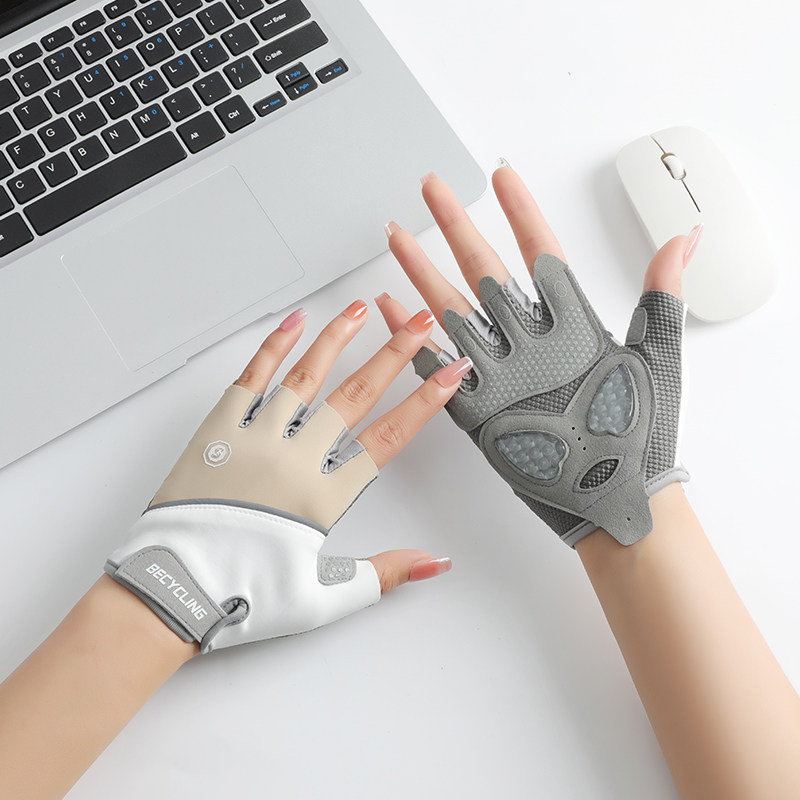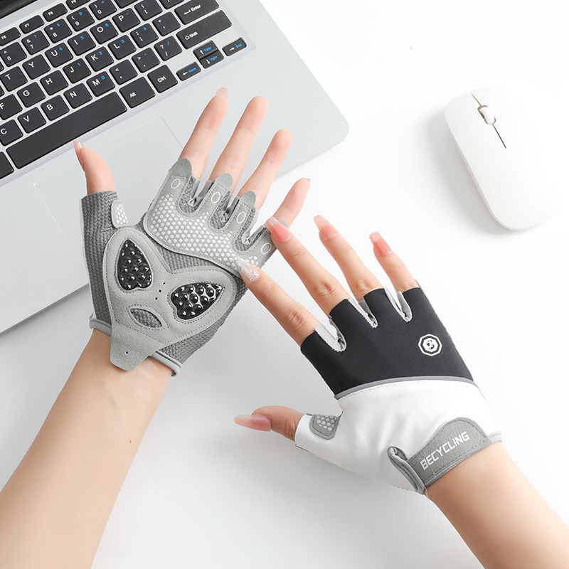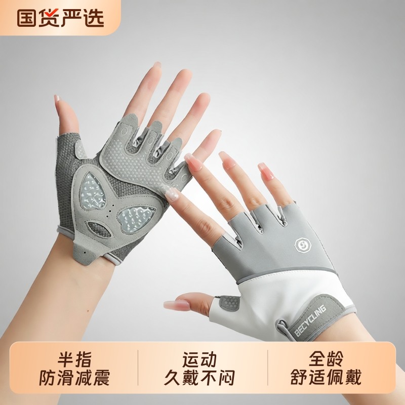 健身手套半指户外骑行运动防晒杠铃男女液态硅胶减震杠铃漏指