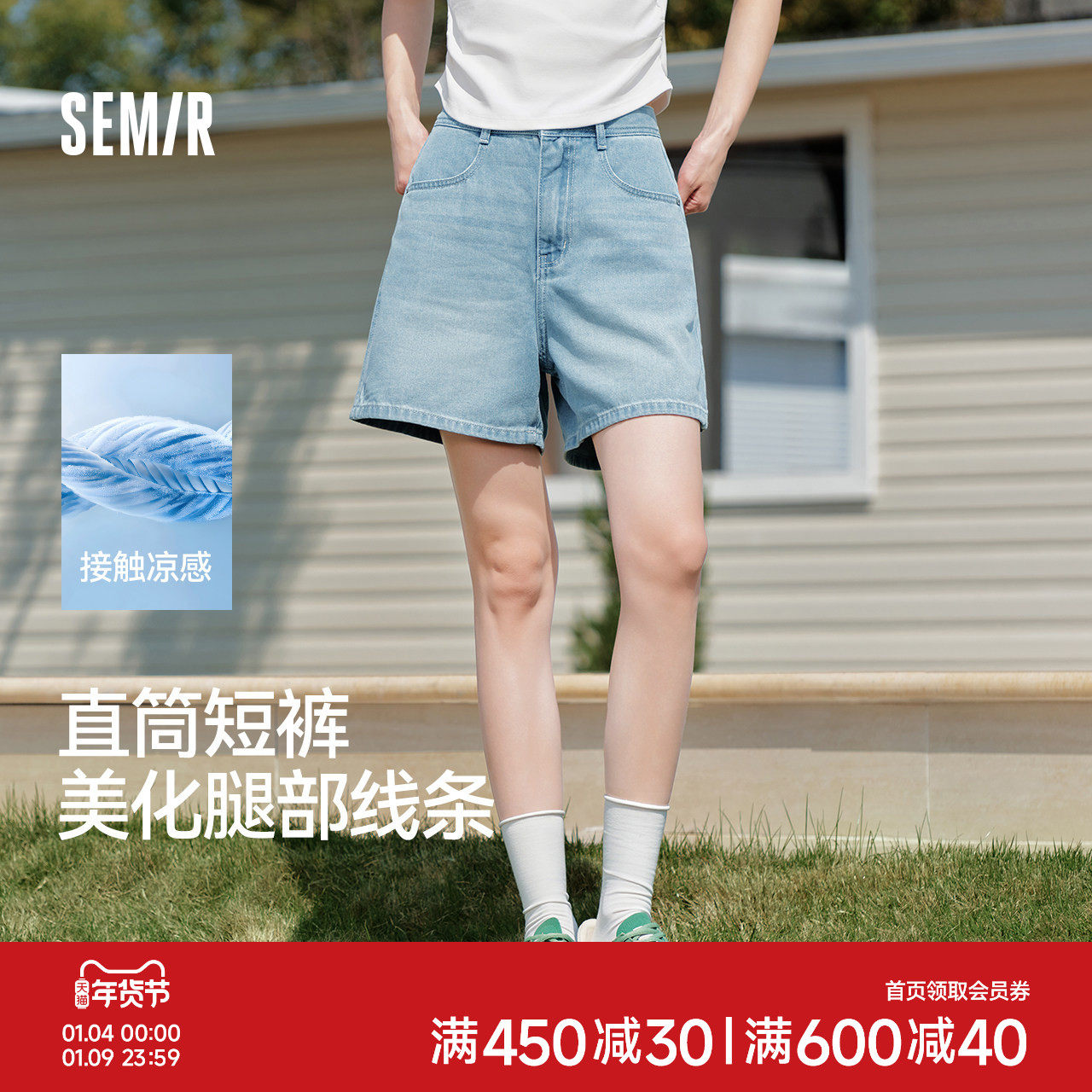 森马牛仔裤女凉感直筒裤2025夏新款短裤浅色白色休闲女裤蓝色牛仔