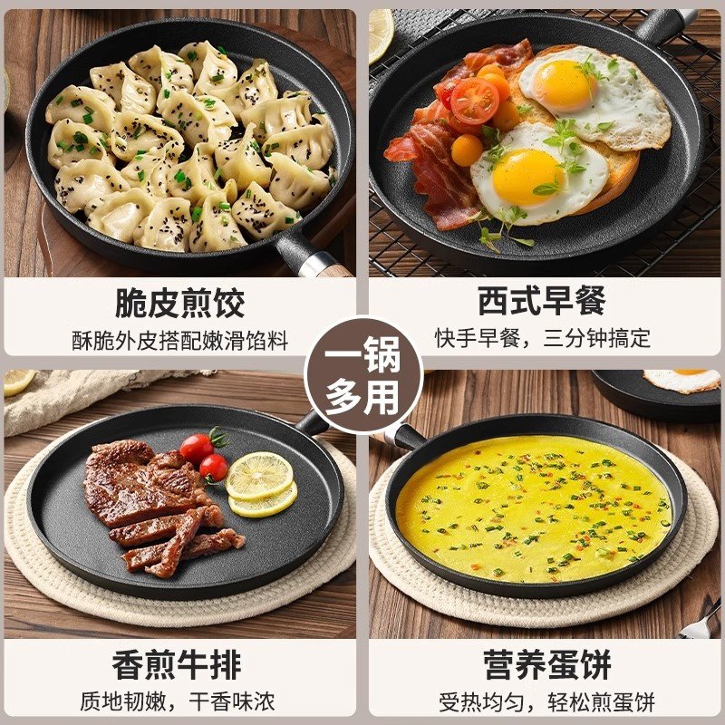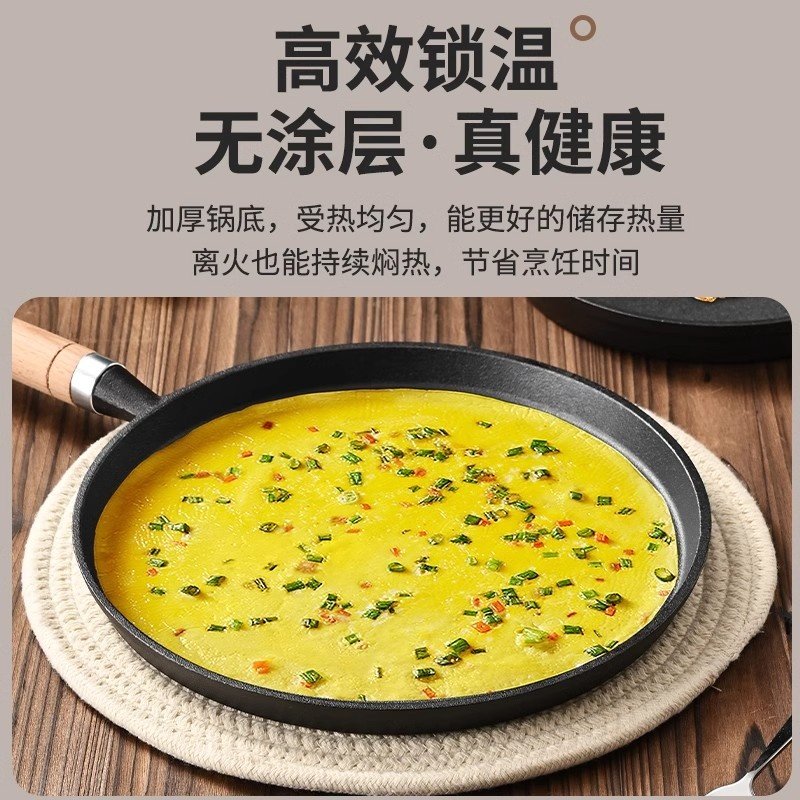 加厚铸铁平底锅家用无涂层烙饼锅手抓饼不粘煎锅摊煎饼果子工具