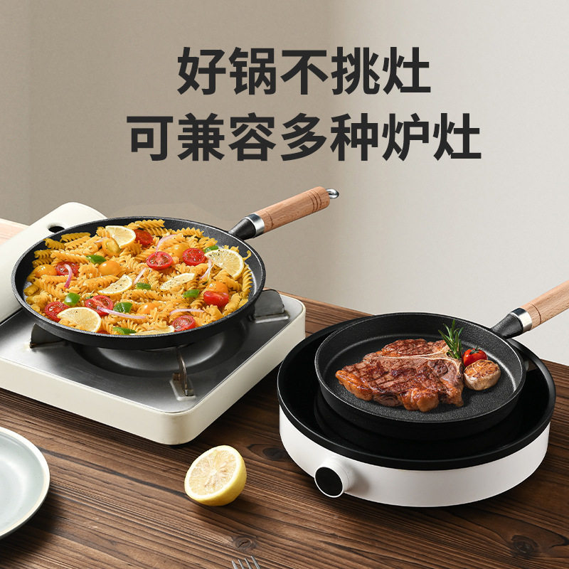 钛红芯控温平底锅不粘锅家用无涂层炒菜煎蛋牛排电磁炉专用深煎锅