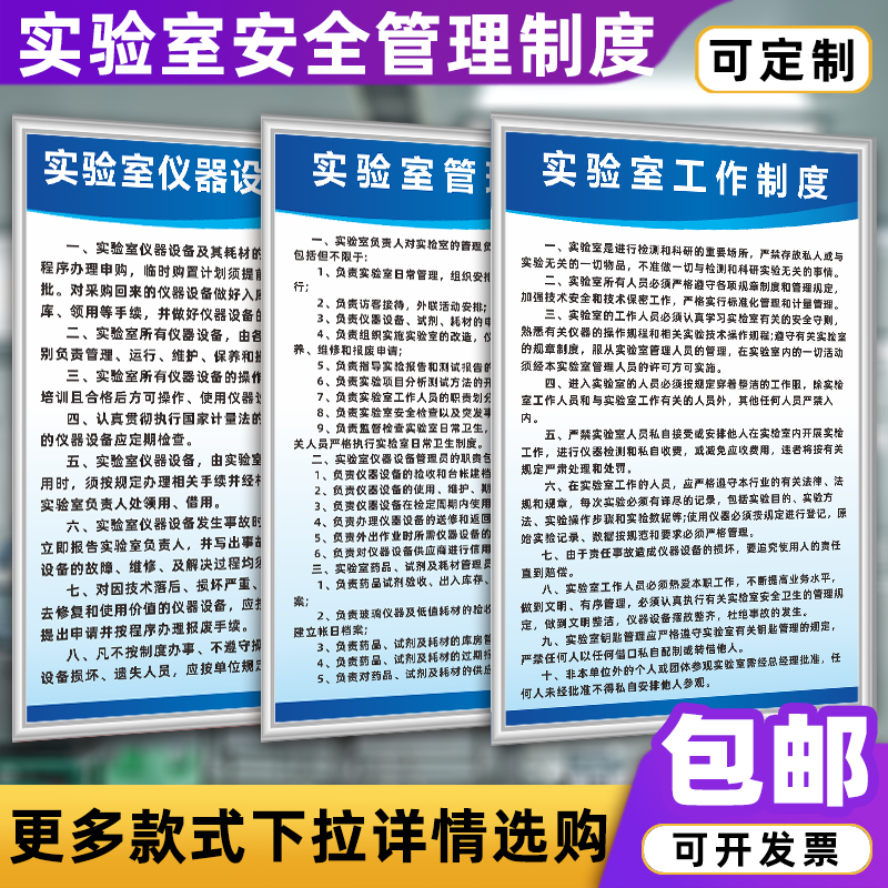 实验室安全工作管理规章制度牌职责仪器设备卫生管理应急预案挂图