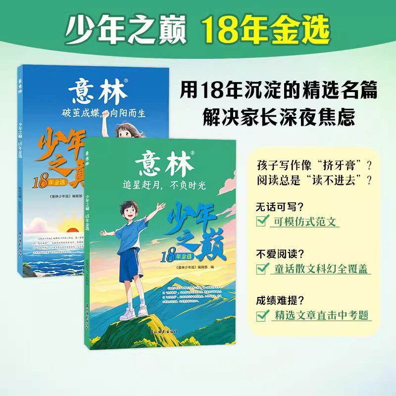 意林少年之巅18年全套两册追星赶月不负时光破茧成蝶向阳而生意林少年版智囊谋略篇智慧篇中小学生素材积累课外读物畅销书排行榜