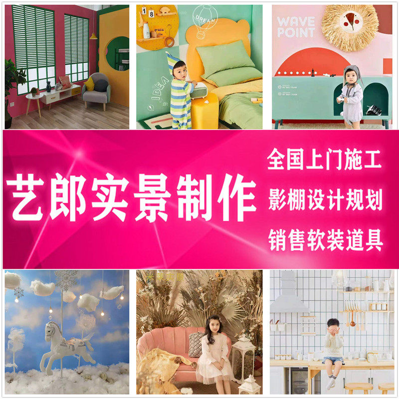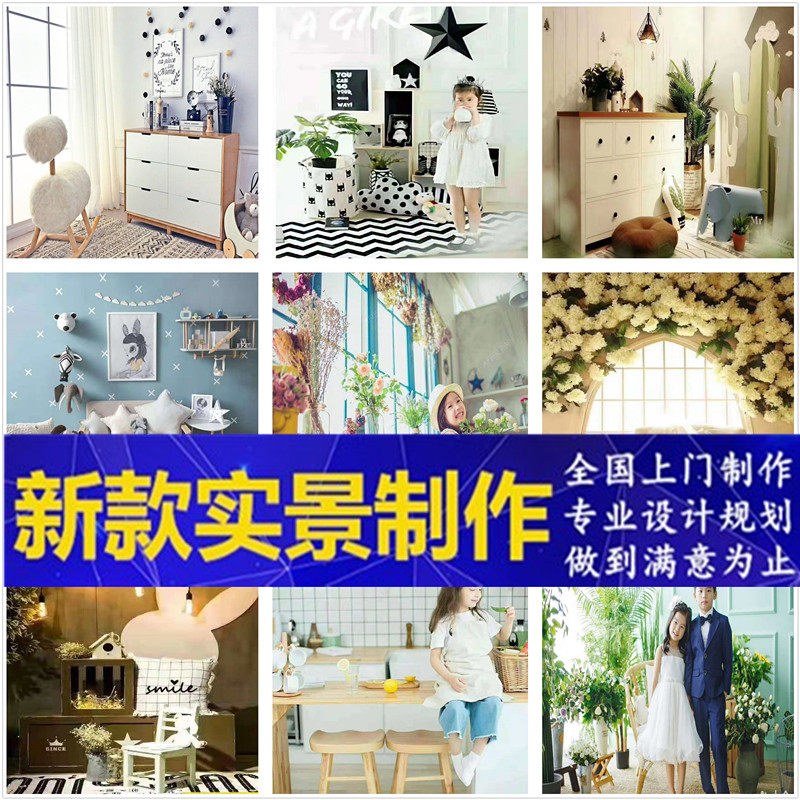 新款儿童实景摄影棚婚纱实景影楼装修简易韩式无闪棚店面设计制作