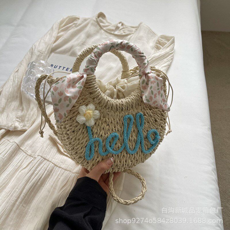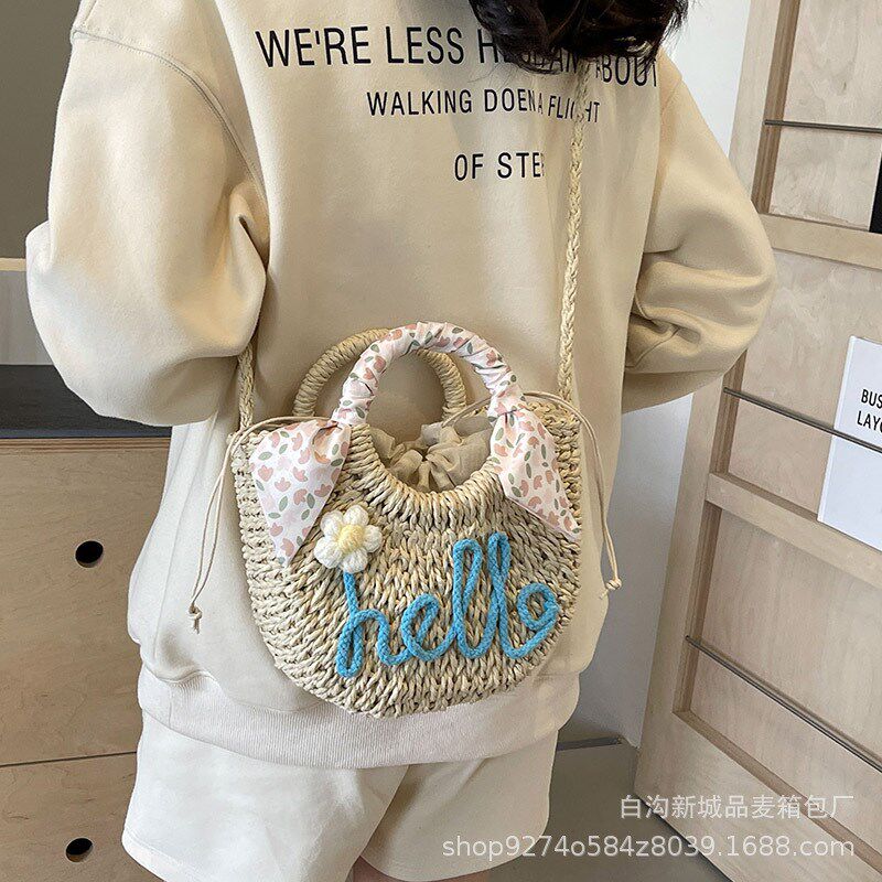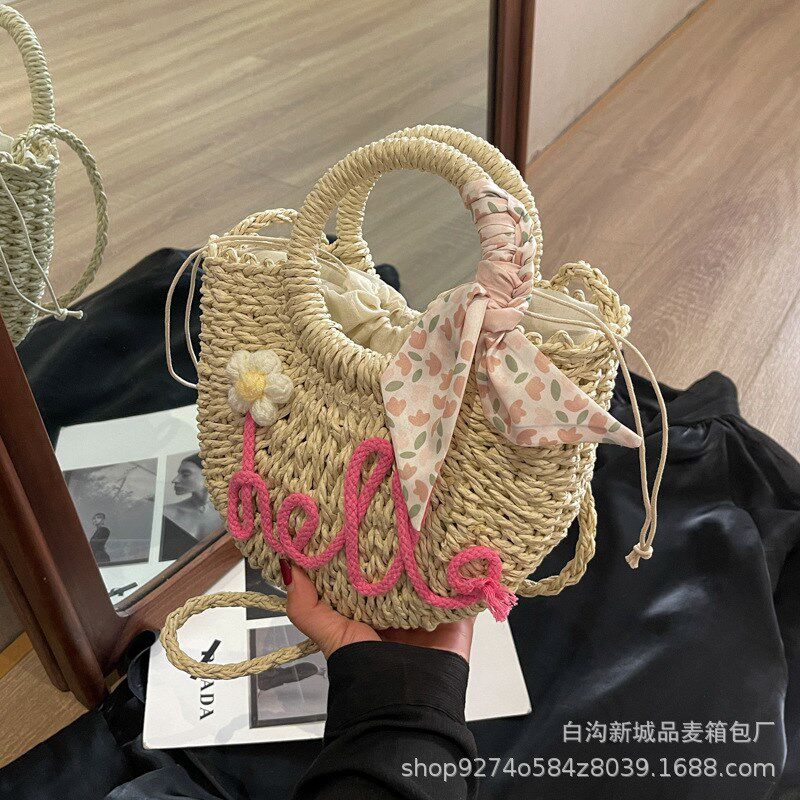 时尚编织手提小包包女2024新款潮今年流行的草编单肩包洋气斜挎包