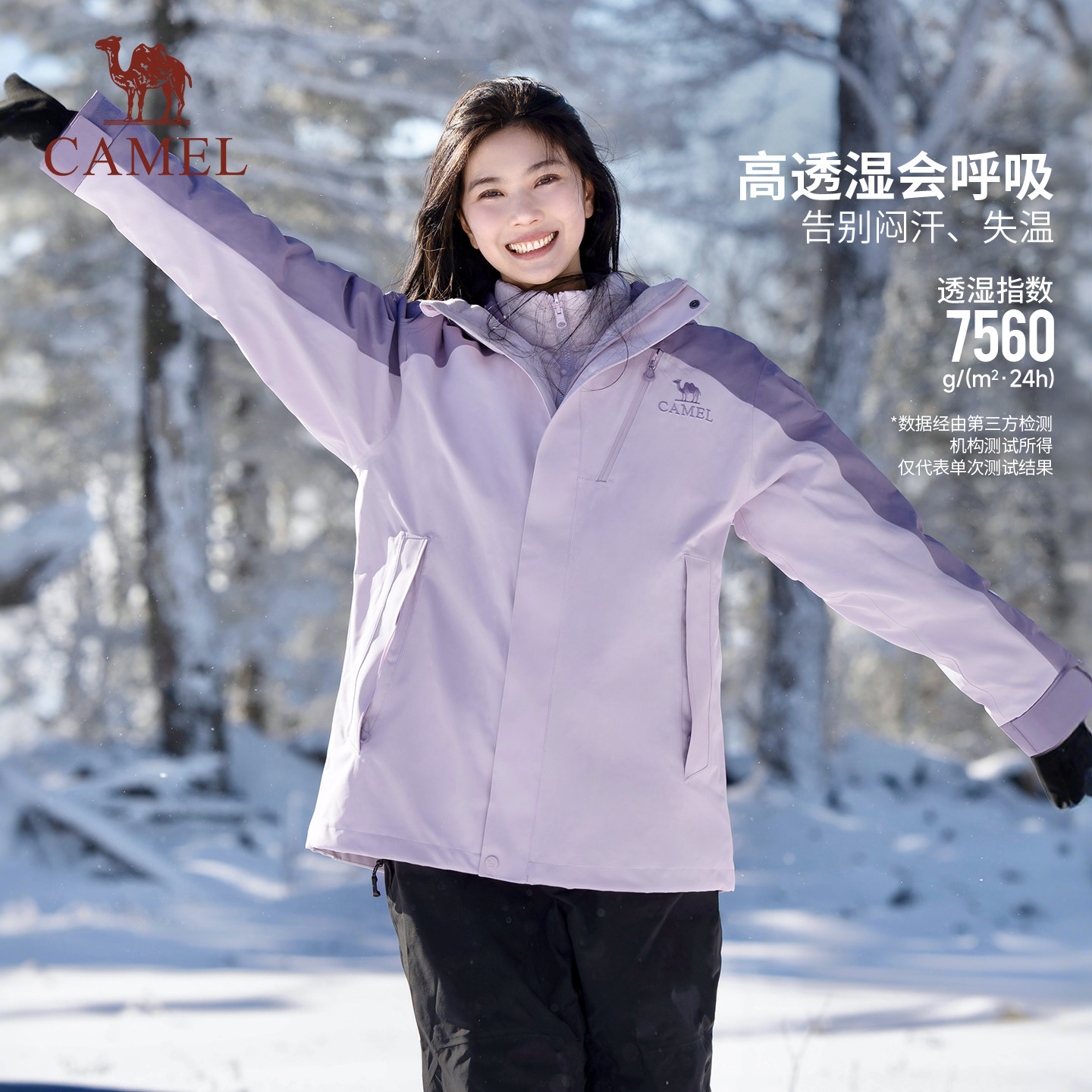 骆驼户外紫玫红色冲锋衣女暴雨防水防风外套男三合一加厚款登山服