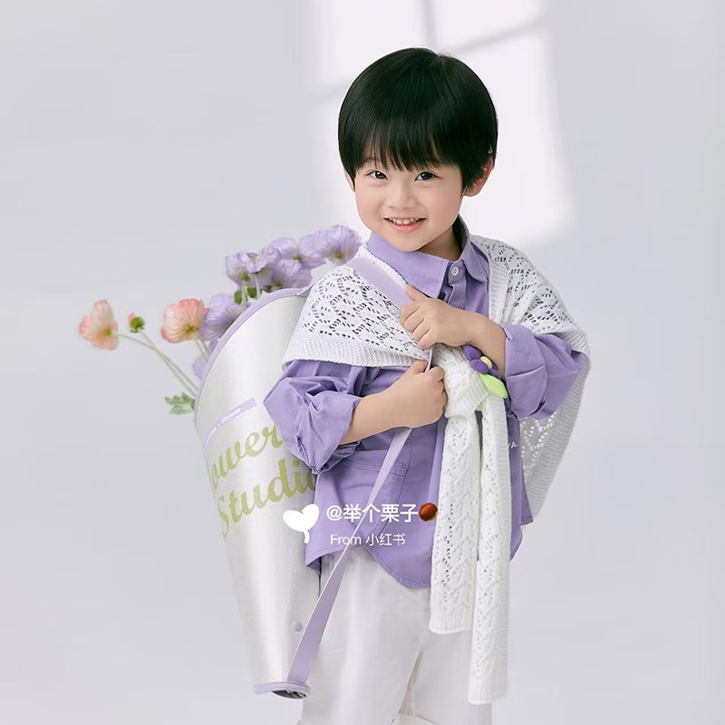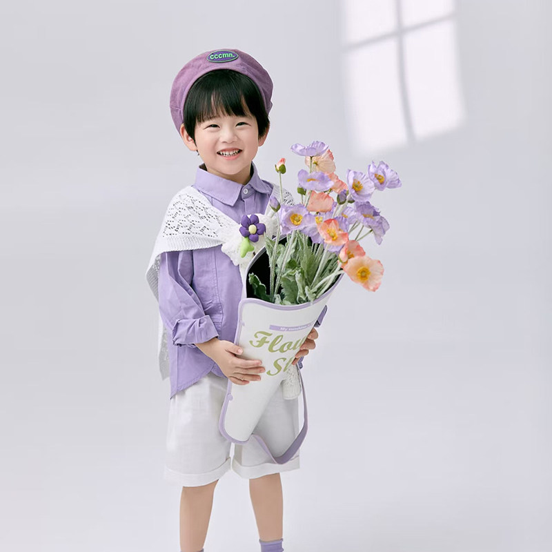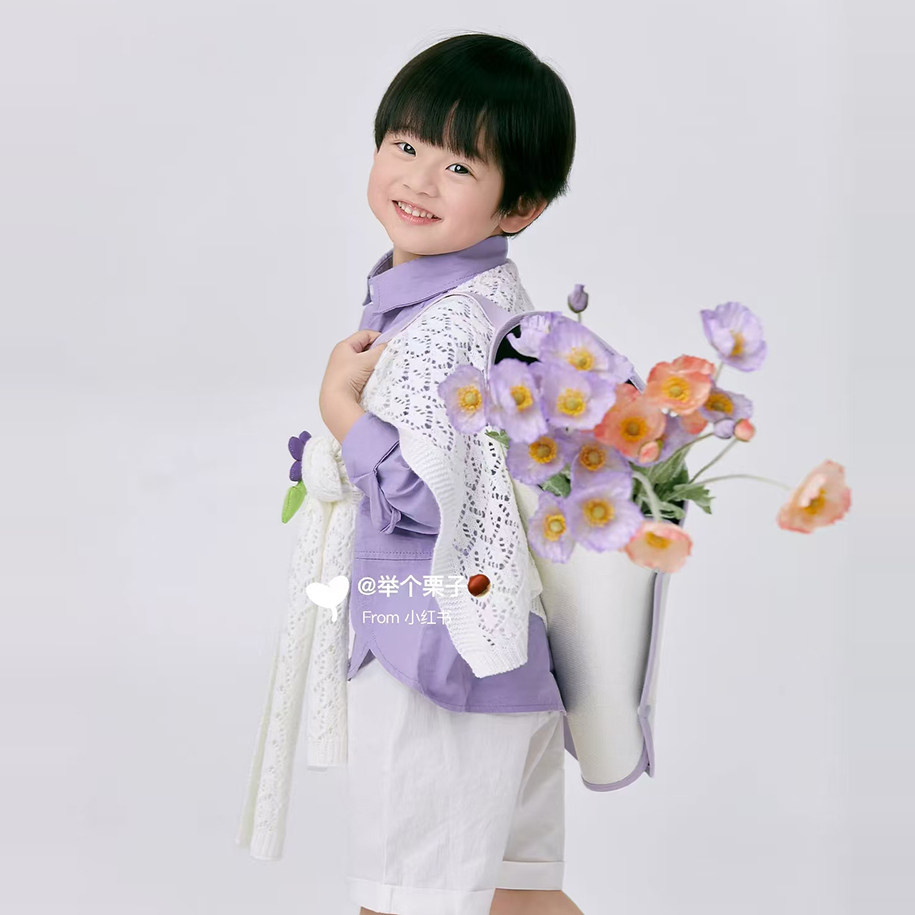 新款儿童摄影服装道具春天紫色系女孩艺术照拍摄宝宝手捧花背包花