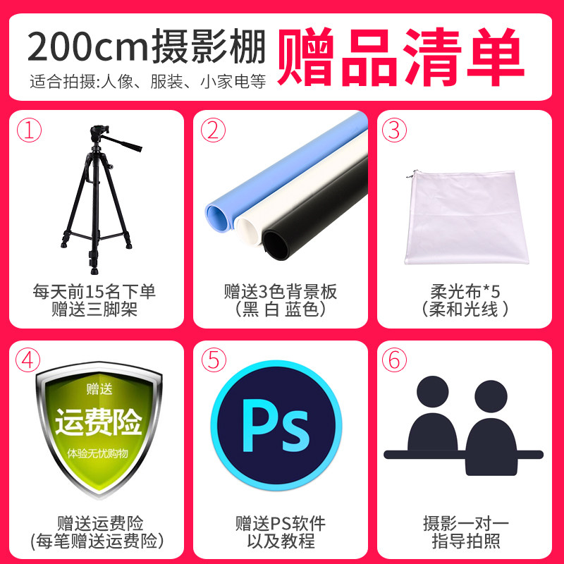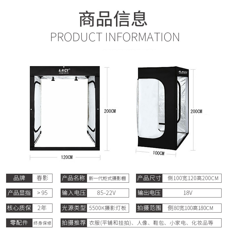 CY春影立体式200cm人像服装柜式摄影棚简易拍照灯箱证件照采集大型补光灯电商产品白底图背景静物拍摄照相