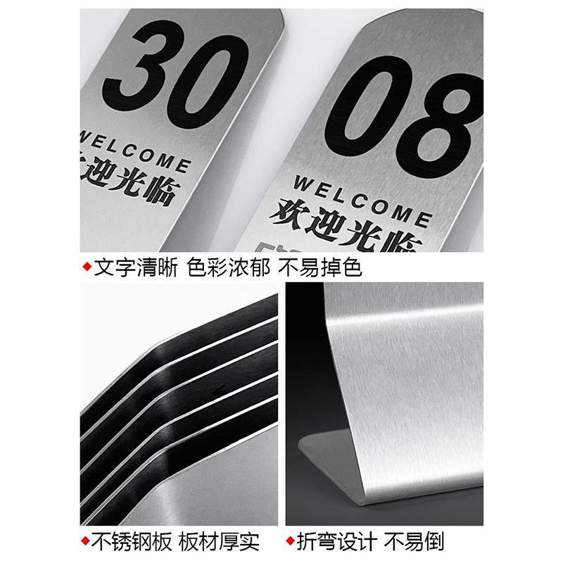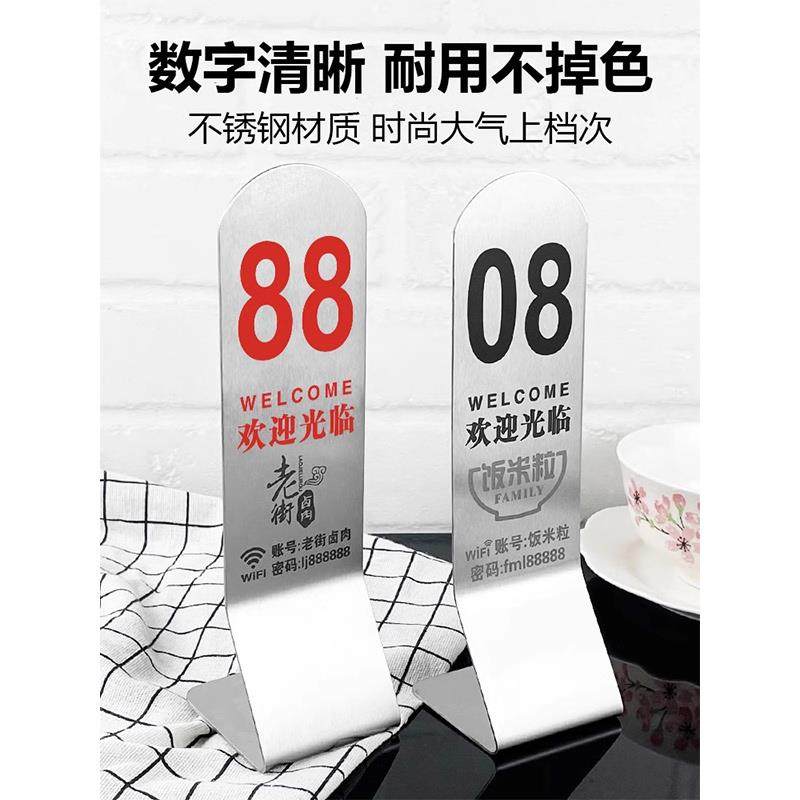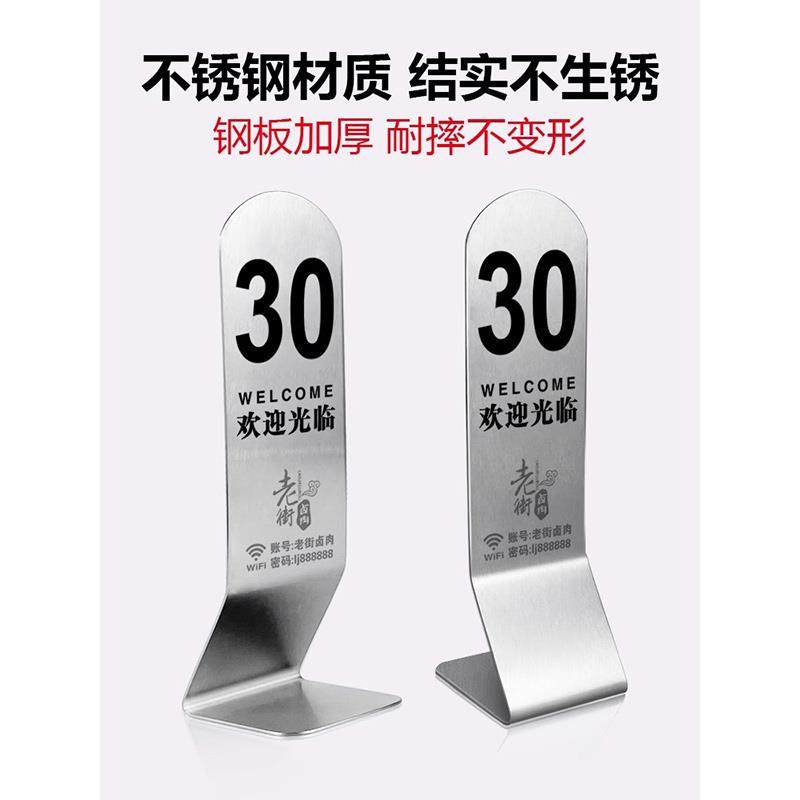 号码牌不锈钢桌号牌立牌立式点餐牌台号餐厅牌台卡餐饮叫号出取餐定制双面定做展示饭店扫码酒店桌牌排号座位