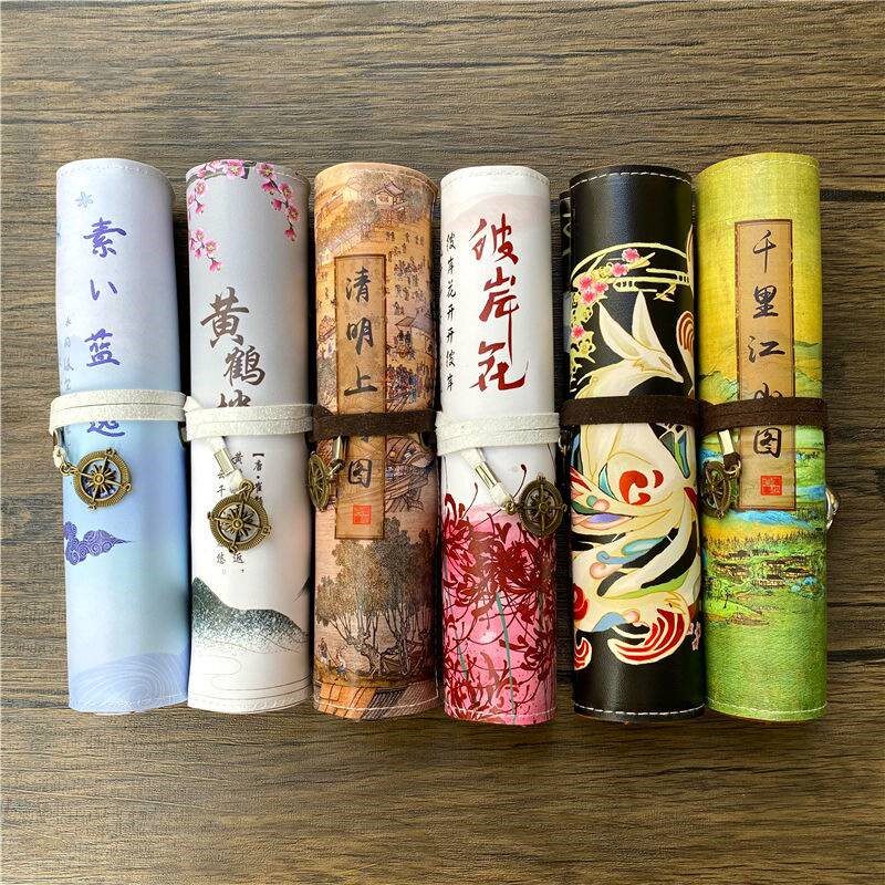 极速古风笔帘卷笔袋初中小学生彼岸花九H尾狐飞鹤男女生创意复古