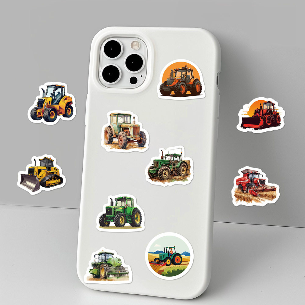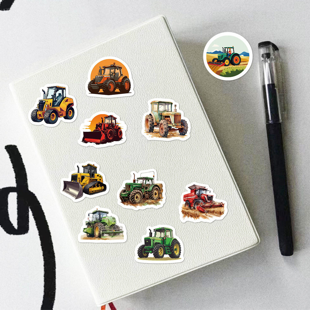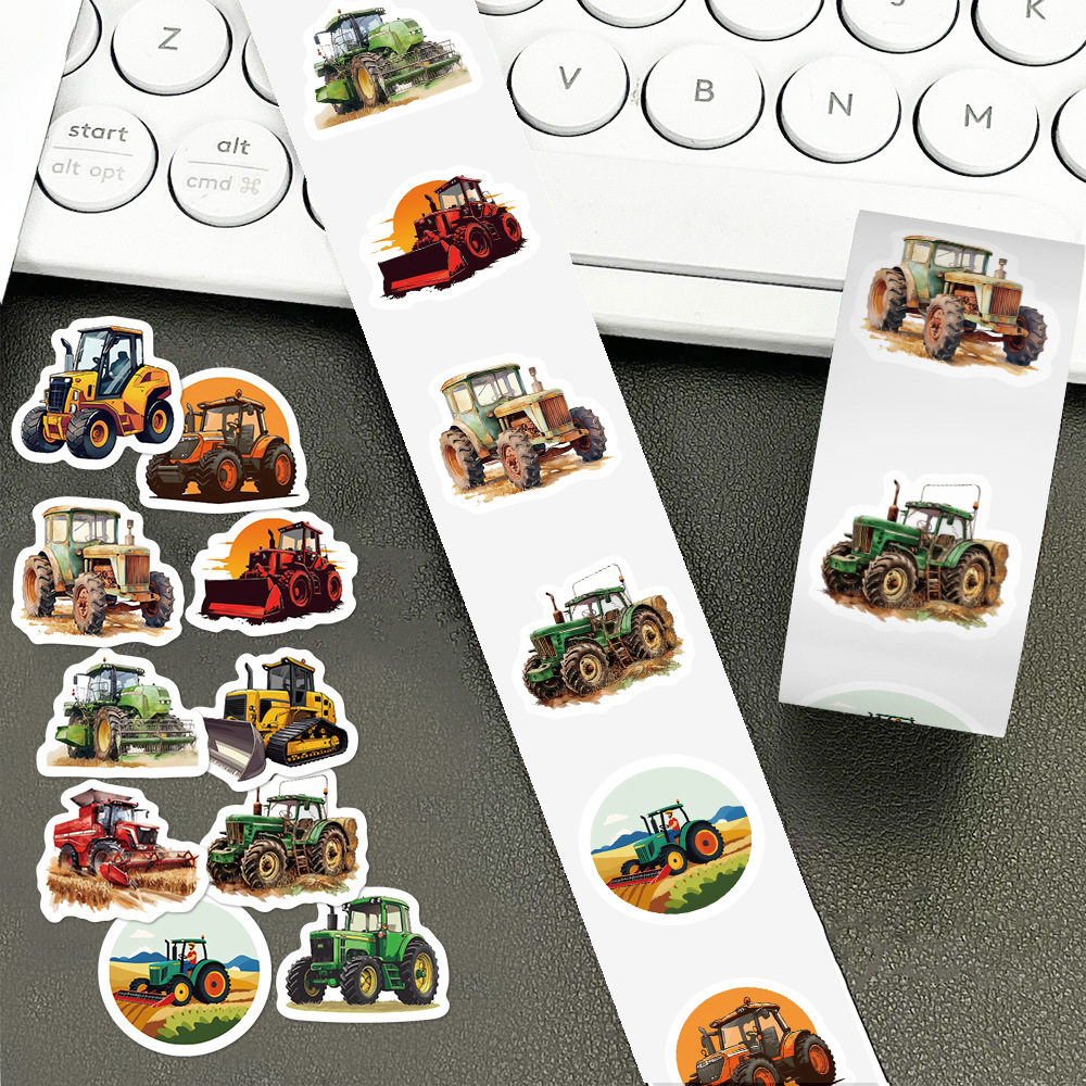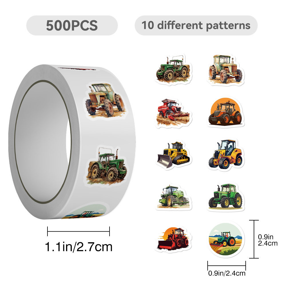 1000贴卡通工程车推土机收割机拖拉机卷卷贴儿童贴画创意封口贴