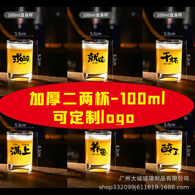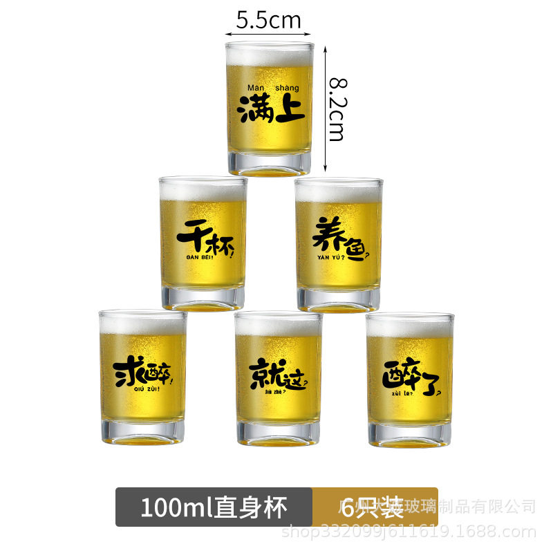 【6个装】加厚创意文案酒杯二两杯网红玻璃斗酒杯餐厅商用白酒杯