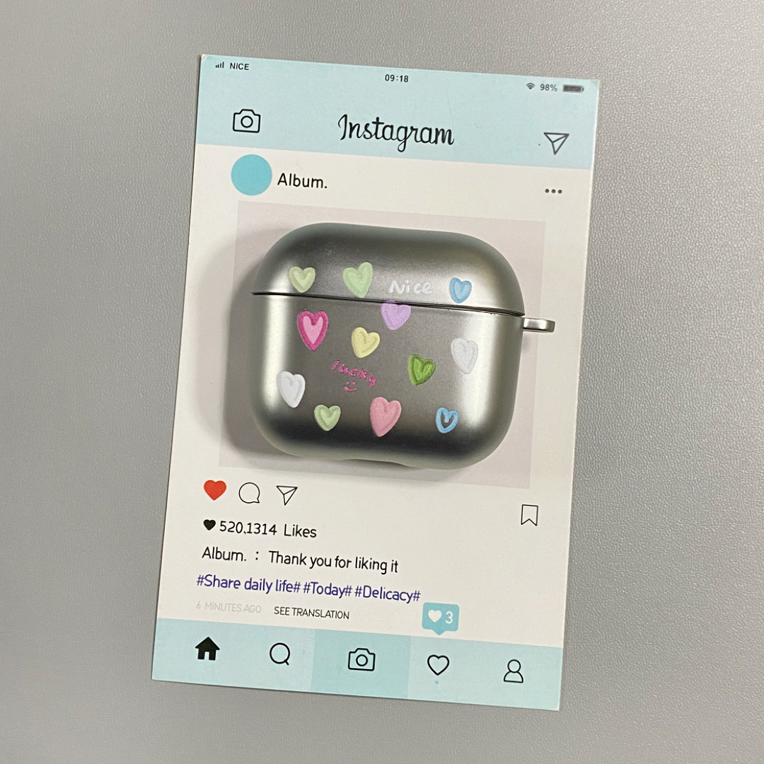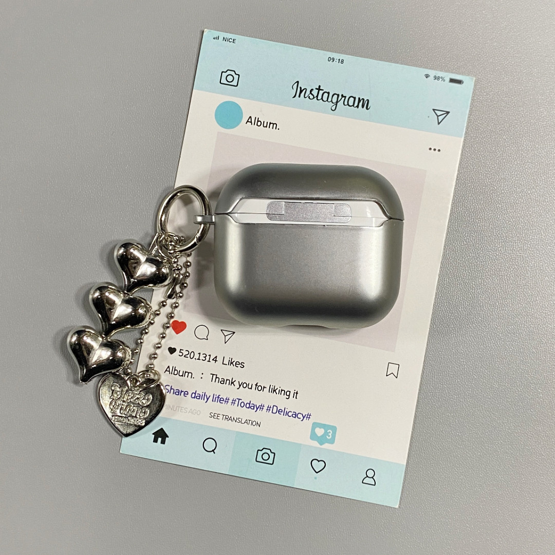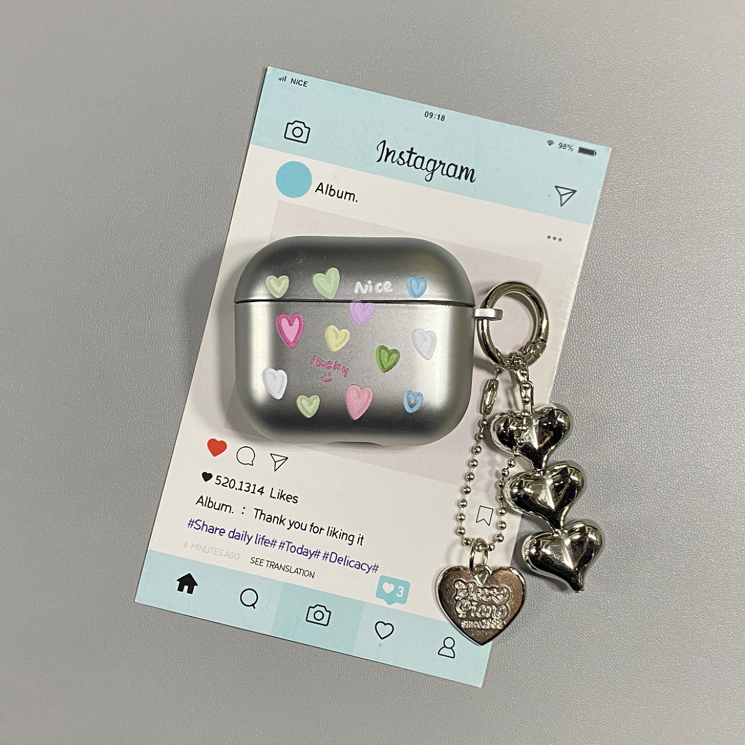 ins电镀银彩色爱心挂坠适用AirPods4保护套iPod苹果耳机壳1/2代无线蓝牙3代airpodspro2代保护壳