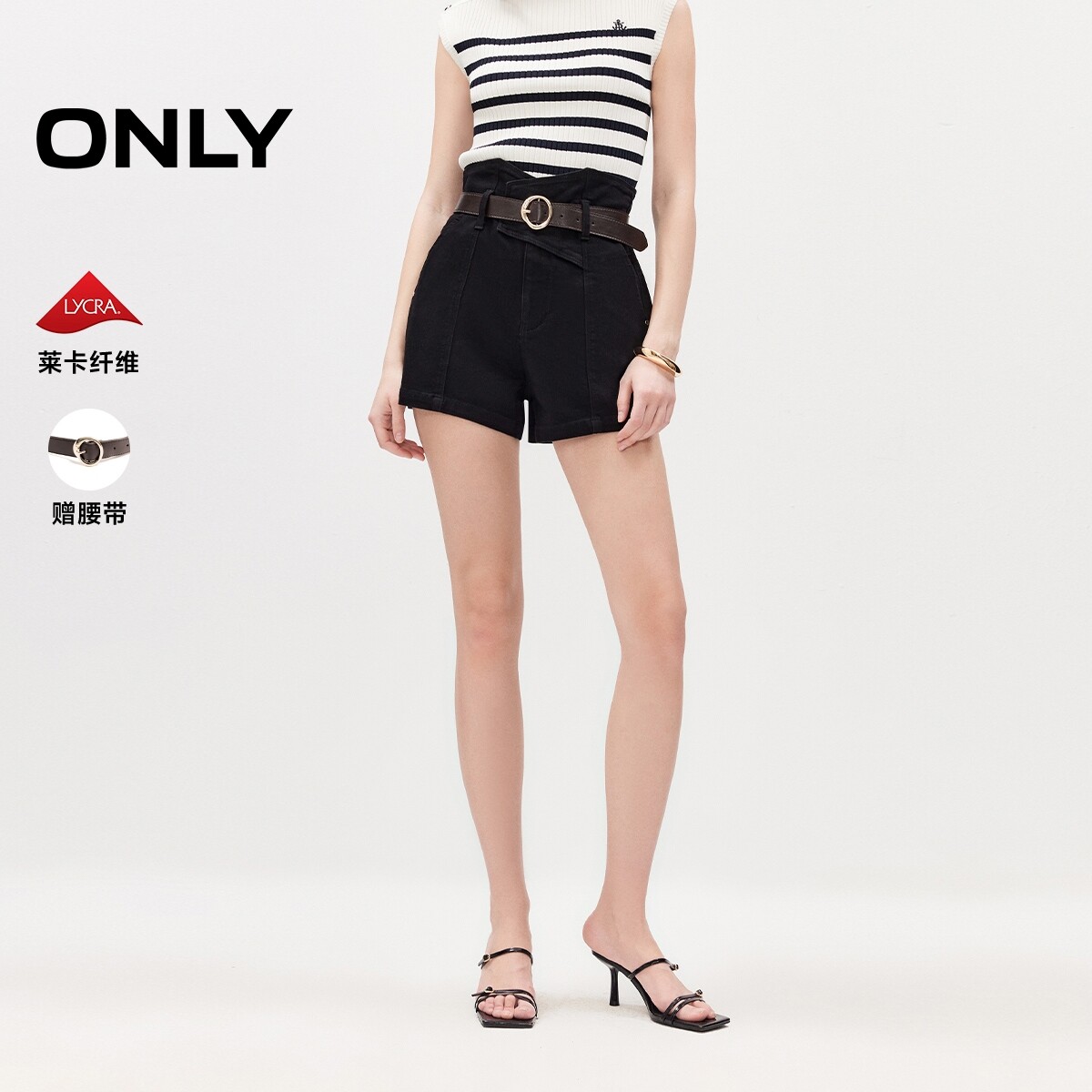 ONLY2026春季新款高腰腰封式腰头莱卡A字可拆卸腰带短裤牛仔裤女