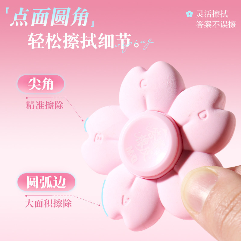 晨光出发光樱号限定旋转樱花橡皮擦指尖陀螺趣味答案橡皮高颜值创意解压像皮小学生专用擦得干净不易留痕象皮