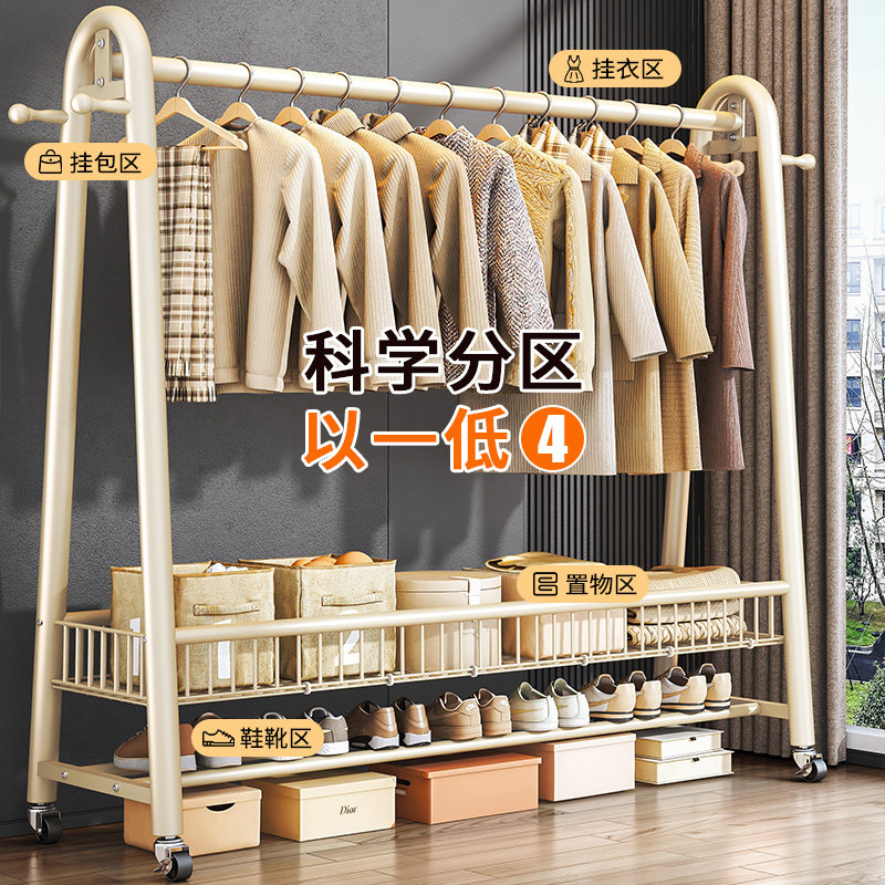 简易衣帽架落地卧室家用挂衣架子可移动室内晾衣架卧室衣服晒衣杆