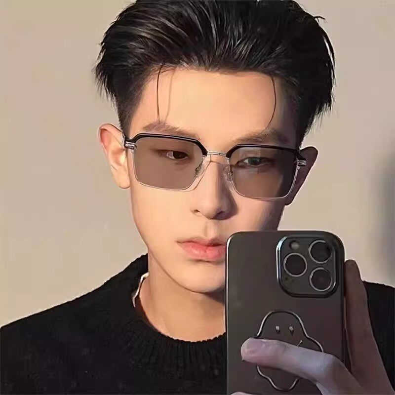 感光变色防蓝光辐射抗疲劳平光眼镜半框护眼防近视无度数男女两用